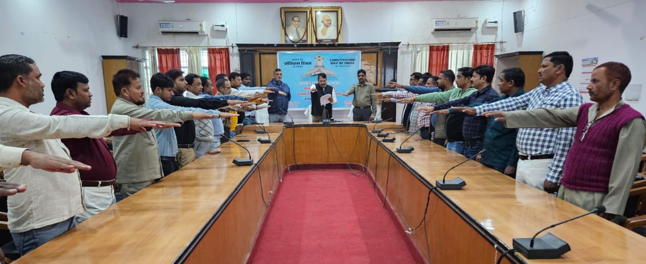 संत कबीर नगर (राष्ट्र की परम्परा)। राष्ट्रीय संविधान दिवस के अवसर पर अपर उप जिलाधिकारी रमेश चंद्र ने कलेक्ट्रेट सभागार में उपस्थित अधिकारियों व कर्मचारियों को संविधान की प्रस्तावना, संविधान का सम्मान एवं उसे अंगीकृत करने की शपथ दिलाई गई।