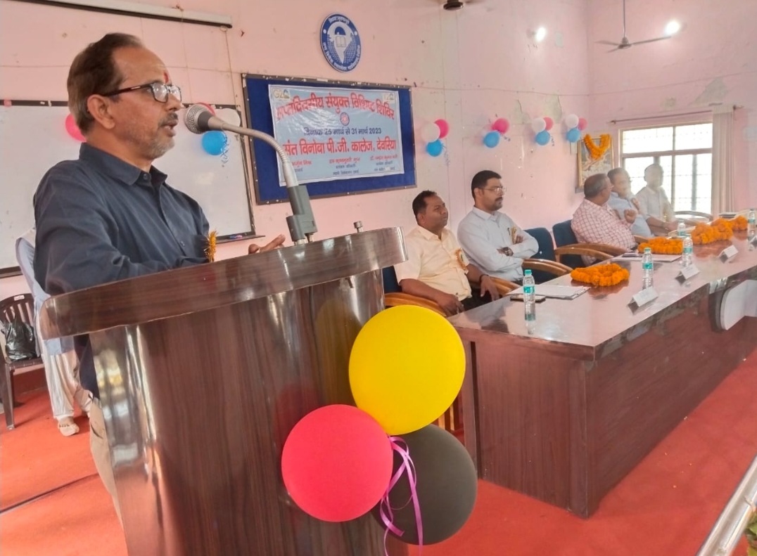 सन्त विनोबा पीoजीo कॉलेज, देवरिया में 25 मार्च से 31 मार्च तक चलने वाले राष्ट्रीय सेवा योजना के विशेष शिविर का उद्घाटन समारोह महाविद्यालय के सभागार में किया गया। कार्यक्रम मे मुख्य अतिथि के रूप में जे बीo महाजन डिग्री कॉलेज चौरी-चौरा के प्राचार्य प्रोo मधुप कुमार उपस्थित रहें। कार्यक्रम की अध्यक्षता महाविद्यालय के प्रबंधक अशोक कुमार मिश्र और महाविद्यालय के प्राचार्य प्रोफ़ेसर अर्जुन मिश्र संरक्षक के रुप में उपस्थित रहें। कार्यक्रम की शुरुआत मुख्य अतिथि प्रो मधूप कुमार प्रबंधक अशोक मिश्रा और प्राचार्य प्रो०अर्जुन मिश्र ने मां सरस्वती के प्रतिमा पर माल्यार्पण और दीप प्रज्वलित कर किया।कार्यक्रम अधिकारीगण डाॅ० चंद्रेश बारी और डाॅ कृष्ण मुरारी गुप्त अतिथियों को पुष्पगुच्छ और अंगवस्त्र प्रदान कर उनका स्वागत किया। स्वयंसेविका शिवांगी पाण्डेय रोशनी एवं अंजलि ने सरस्वती वन्दना एवं लक्ष्य गीत शिवांगी आदर्शी और रोशनी ने प्रस्तुत किया।