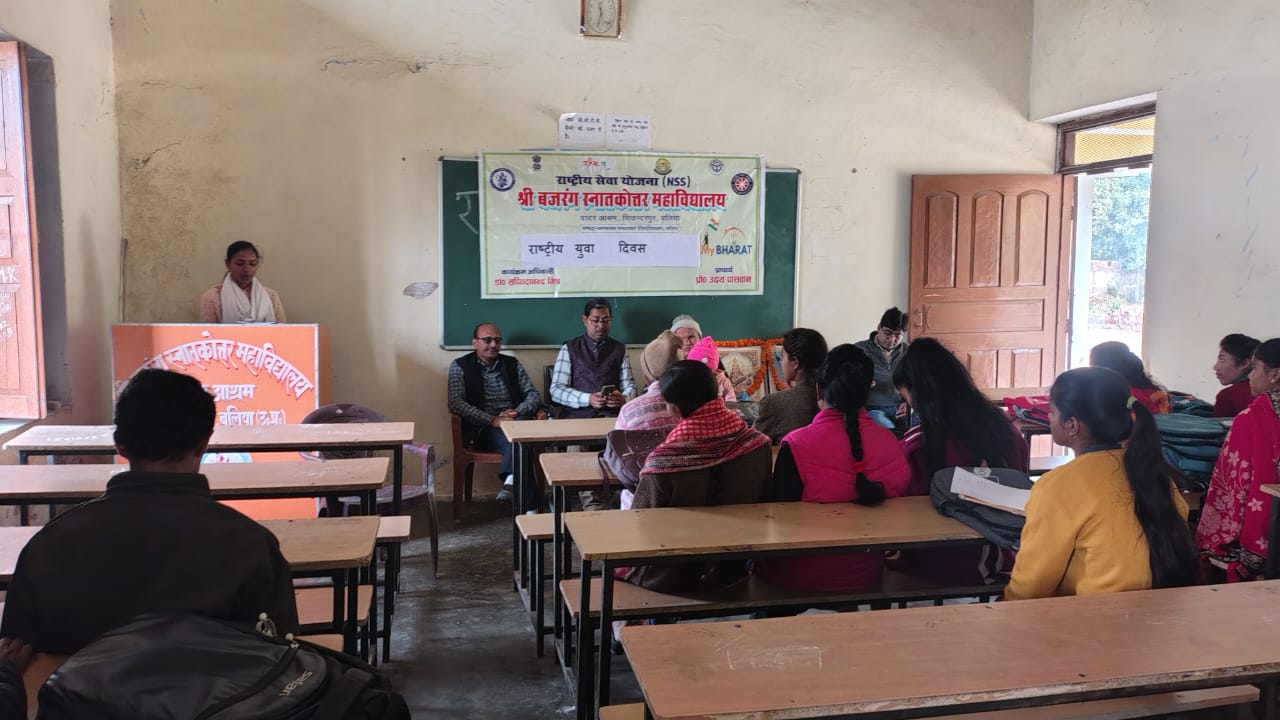 बलिया(राष्ट्र की परम्परा)l श्री बजरंग स्नातकोत्तर महाविद्यालय, दादर आश्रम में राष्ट्रीय सेवा योजना (एनएसएस) इकाई के तत्वावधान में स्वामी विवेकानंद की जयंती के अवसर पर महाविद्यालय के प्राचार्य प्रो. उदय पासवान के मार्गदर्शन एवं संरक्षण मे राष्ट्रीय युवा दिवस बड़े उत्साह और जोश के साथ मनाया गया। कार्यक्रम की शुरुआत कार्यक्रम अधिकारी डॉ एस एन मिश्र, डॉ उमाकांत यादव, कार्यालय अधीक्षक सत्यनारायण यादव एवं वरिष्ठ लिपिक हरेंद्र नाथ चौधरी ने दीप प्रज्वलन और माँ सरस्वती एवं स्वामी विवेकानंद के चित्र पर माल्यार्पण से हुई। कार्यक्रम अधिकारी ने विद्यार्थियों को स्वामी विवेकानंद के विचारों और आदर्शों से प्रेरणा लेने के लिए प्रोत्साहित किया। हरेंद्र नाथ चौधरी ने युवाओं को समाज में सकारात्मक बदलाव लाने और देश की प्रगति में योगदान देने का आह्वान किया। इस अवसर पर छात्रों ने विभिन्न सांस्कृतिक कार्यक्रम प्रस्तुत किए, जिनमें भाषण और कविता पाठ शामिल थे। इसके अतिरिक्त, एनएसएस स्वयंसेवकों ने “युवाओं का योगदान देश निर्माण में” जैसे संकल्प लिया। इस अवसर पर महाविद्यालय के शिक्षकगण, कर्मचारी, और बड़ी संख्या में छात्र-छात्राएं उपस्थित रहे। अंत मे कार्यक्रम अधिकारी ने कहा कि राष्ट्रीय सेवा योजना इकाई की यह पहल छात्रों के जीवन में प्रेरणा का स्रोत बनी और उन्हें स्वामी विवेकानंद के विचारों के प्रति जागरूक किया। कार्यक्रम का समापन डॉ उमाकांत यादव ने धन्यवाद ज्ञापन और राष्ट्रगान के साथ हुआ