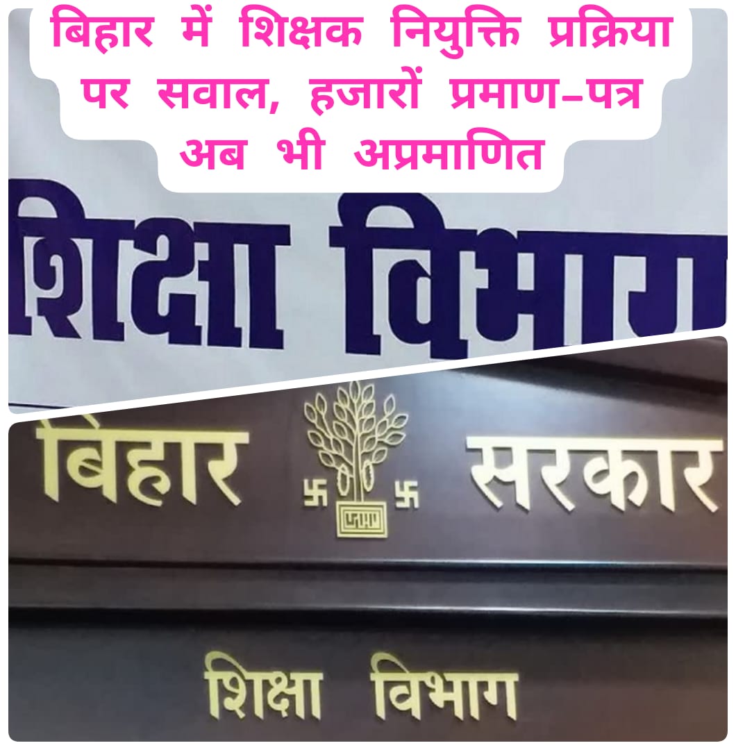 पटना (राष्ट्र की परम्परा डेस्क)बिहार में नियोजित शिक्षकों के शैक्षणिक और प्रशिक्षण प्रमाण–पत्रों की जांच (Bihar Teacher Certificate Verification Pending) वर्षों से जारी है, लेकिन प्रशासनिक सुस्ती और विभागीय लापरवाही के कारण अब तक हजारों सर्टिफिकेट लंबित पड़े हुए हैं। हालात यह हैं कि कई जिलों में आज भी ऐसे शिक्षक कार्यरत हैं, जिनकी शैक्षणिक योग्यता की आधिकारिक पुष्टि पूरी नहीं हो सकी है। जिस गति से वेरिफिकेशन का काम चल रहा है, उसे देखकर यह अनुमान लगाया जा रहा है कि अगले दस वर्षों में भी यह प्रक्रिया पूरी होना मुश्किल लग रहा है।