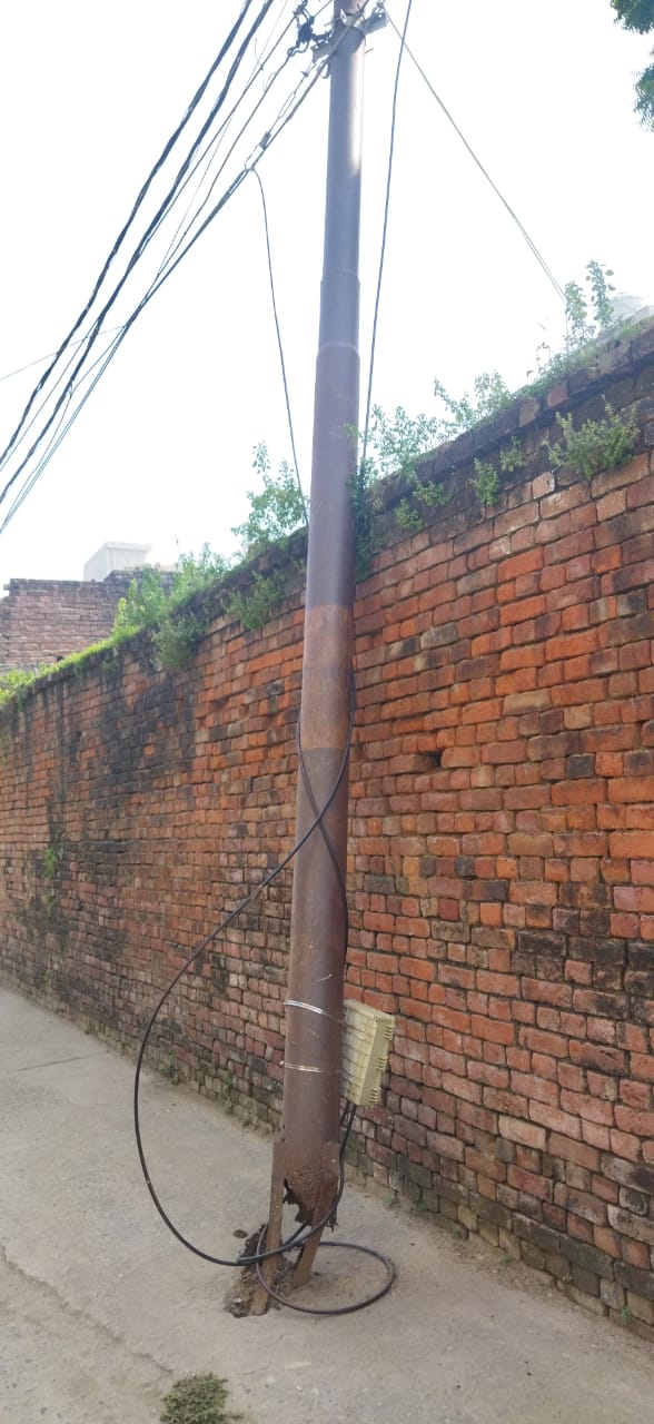 नगर के पटेल नगर में आधा दर्जन से अधिक पोल टूट कर लटक रहे है। जिससे कभी भी बड़ा हादसा हो सकता है। स्थानीय लोगो की माने तो यहां पर विधुत पोल कई दिन पूर्व से टूट कर लटक रहे है लेकिन इसकी सुधि लेने वाला कोई नहीं है।बिजली विभाग भी मौन दिख रहा है।लोगो का कहना है कि यदि पोलों को नहीं बदला गया तो कभी भी इससे भारी दुर्घटना हो सकती है।