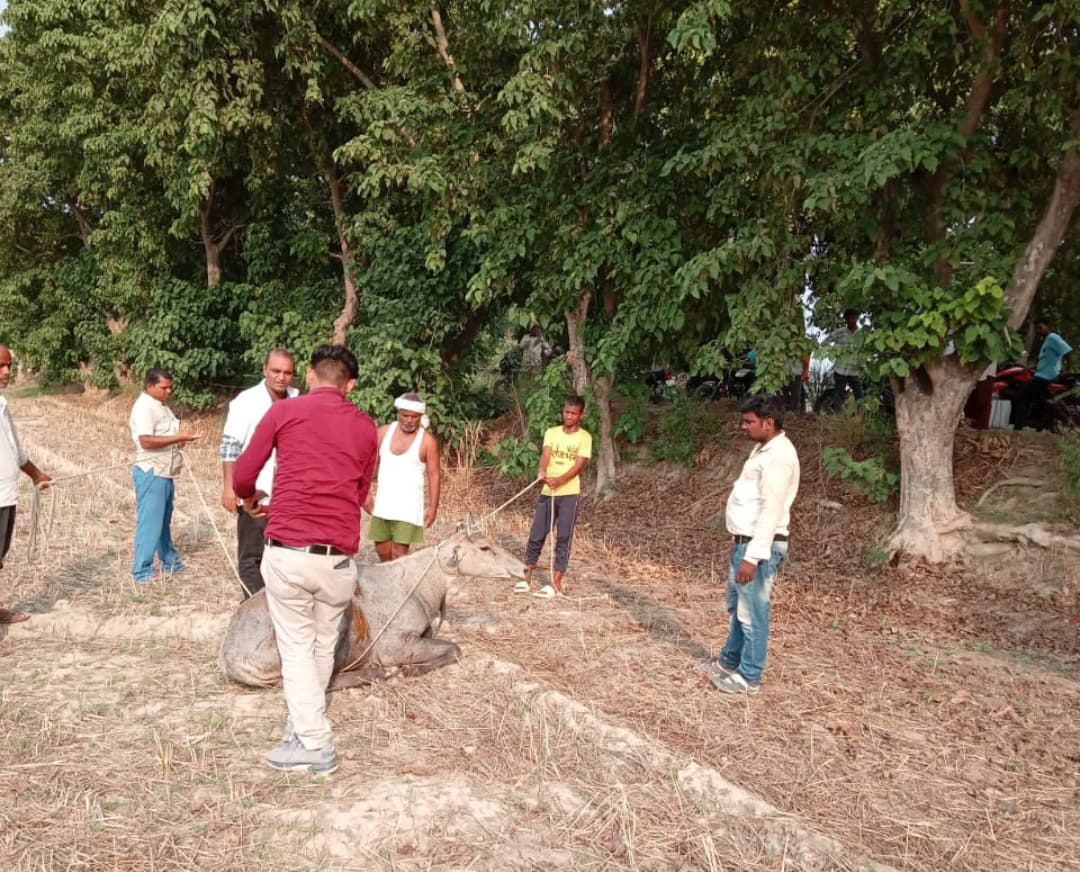सिकंदरपुर/बलिया (राष्ट्र की परम्परा)। रविवार को सिकन्दरपुर नगरा मार्ग पर निकट राष्ट्रीय इंटर कॉलेज संदवापुर के पास सड़क पार कर रही नीलगाय को तेज रफ्तार बोलेरो ने टक्कर मार दी। हादसे में नीलगाय गंभीर रूप से घायल हो गई। स्थानीय निवासी कन्हैया राय की सूचना पर 1962 पशु एम्बुलेंस टीम मौके पर पहुंची। डॉ. अभय सिंह, सहायक आशुतोष और चालक राजकुमार की टीम ने घायल नीलगाय का प्राथमिक उपचार किया। डॉ. सिंह ने बताया कि नीलगाय के पैर और पेट में गंभीर चोटें थीं, लेकिन समय पर इलाज से अब हालत स्थिर है। टक्कर मारने के बाद बोलेरो चालक फरार हो गया। 30 मिनट आवागमन बाधित रहा