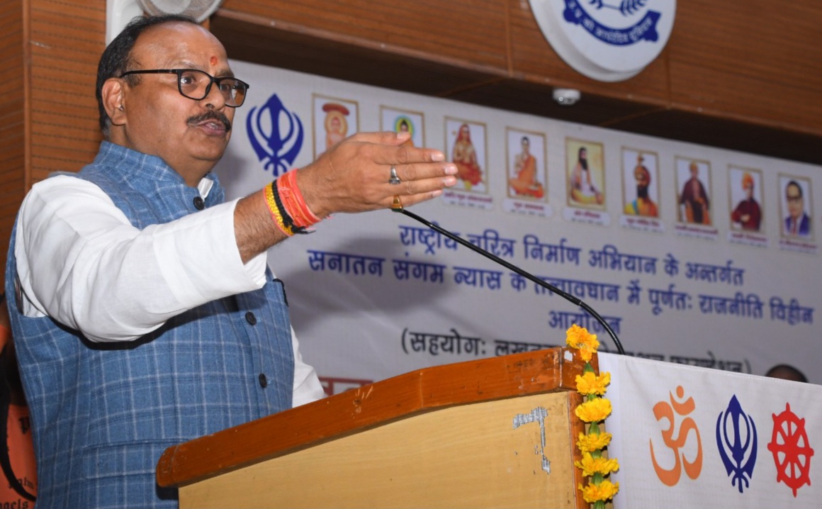 सनातन संगम न्यास द्वारा सहकारिता भवन प्रेक्षागृह में आयोजित सनातन धर्म समागम में अपने विचार व्यक्त करते हुए उप मुख्यमंत्री ने कहा कि भारत सदभावना का देश है जहां प्रत्येक व्यक्ति सनातनी है। उत्तर प्रदेश सरकार द्वारा आयोजित महांकुम्भ मेले में शाश्वत सनातन की झलक दिखाई पड़ती है क्योंकि महांकुम्भ में किसी भी प्रकार कोई ऊंच नीच रंग भाषा एवं अमीर गरीब का भेद दिखाई नहीं पड़ता है। क्योंकि भारत को ही नहीं बल्कि पूरे विश्व को एक सूत्र बांधा है।