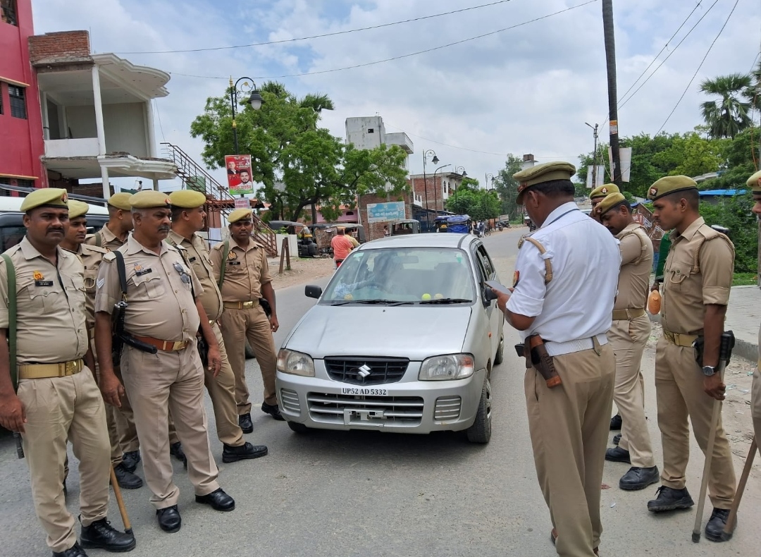 मऊ दोहरीघाट थाना क्षेत्र के क्षेत्र के आजमगढ़ मोड़ के पास यातायात नियमों से संबंधित नियमों का पालन कराने हेतु चेकिंग के दौरान एक चारपहिया वाहन पर मिले दोपहिया वाहन के नंबर प्लेट पुलिस ने चारपहिया वाहन को सीज करते हुए चालक को हिरासत में लेकर जांच पड़ताल के लिए थाने पहुंचाया आपको बता दें कि पुलिस अधीक्षक अविनाश पांडे के निर्देशन में यातायात नियमों का पालन कराने एवं जाम की समस्या से निजात दिलाने हेतु टीएसआई केदारनाथ भारती को दोहरीघाट भेजा गया मंगलवार की सुबह टीएसआई केदारनाथ ने पीएससी पुलिस बल के साथ चेकिंग के दौरान यातायात नियमों का उल्लंघन करने वाले सभी छोटे बड़े वाहनों का दोपहर लगभग 2:00 बजे तक 32 वाहनों का चालान किया उसी बीच दोहरीघाट थाना क्षेत्र के आजमगढ़ मोड़ के पास चेकिंग के दौरान एक चारपहिया वाहन पर संदेह हुआ तुरंत चारपहिया वाहन को रोककर चेक किया गया चेकिंग के दौरान चारपहिया वाहन के नंबर प्लेट पर दोपहिया वाहन पैशन प्रो का नंबर मिला पुलिस ने तुरंत कार्यवाही करते हुए चार पहिया वाहन को सीज करते हुए वाहन चालक हिरासत में लेकर जांच पड़ताल के लिए थाने ले गई