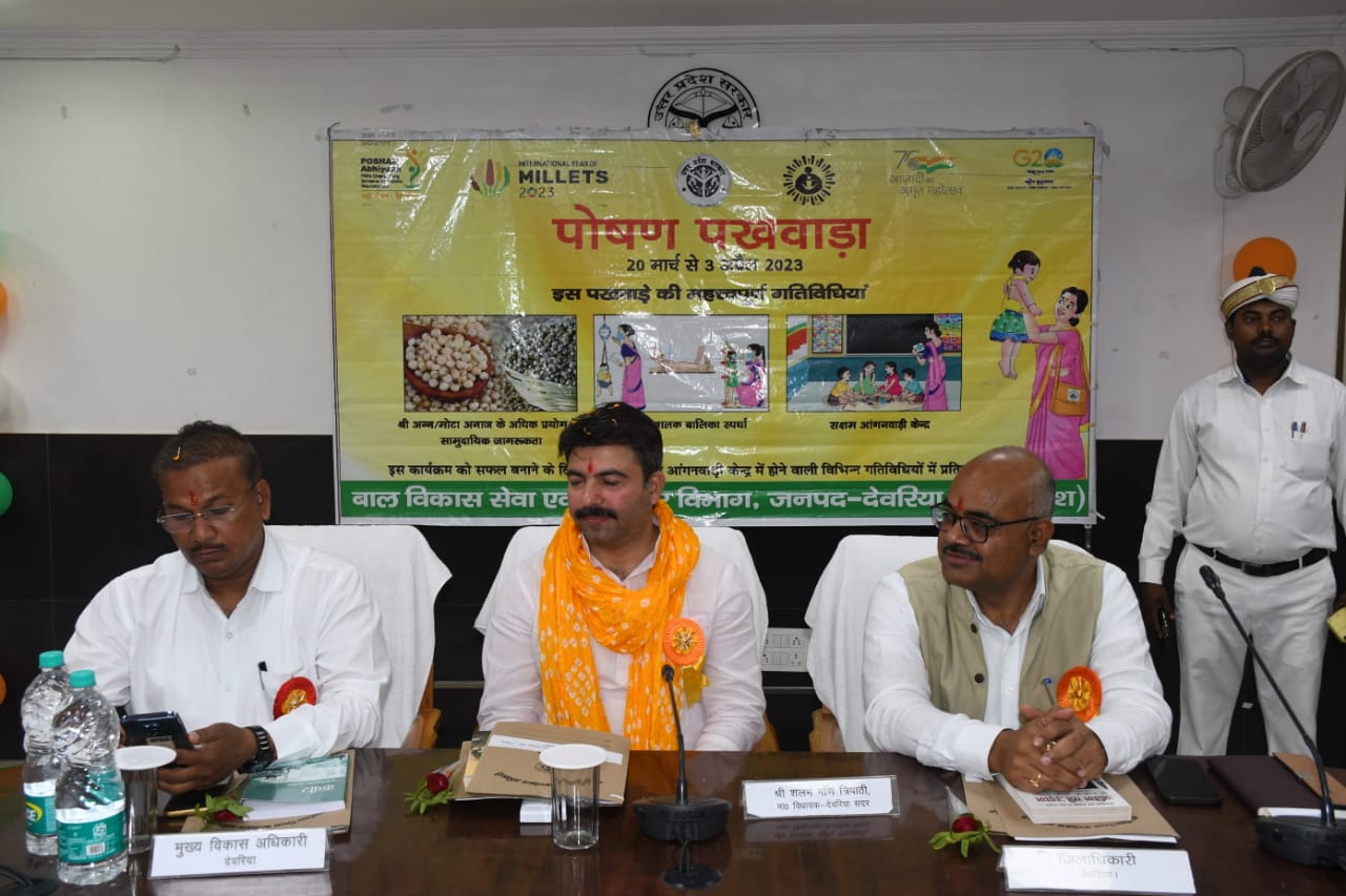 जिलाधिकारी जितेंद्र प्रताप सिंह ने बताया कि 20 मार्च से 3 अप्रैल तक पोषण पखवाड़ा के तहत जनपद में विभिन्न कार्यक्रम आयोजित किए जाएंगे। पोषण पखवाड़े के अंतर्गत तीन लक्ष्य निर्धारित किए गए हैं। इसमें अन्न (मोटा अनाज) के उपभोग को प्रोत्साहन दिया जाएगा, स्वस्थ बालक बालिका स्पर्धा का आयोजन होगा एवं सक्षम आंगनवाड़ी केंद्रों को प्रोत्साहित किया जाएगा। उन्होंने बताया कि अन्न के अंतर्गत ज्वार, बाजरा, रागी, सावा, रामदाना, मंडुवा,कोदो, कुटटू, चीना इत्यादि आते हैं। ये सभी पोषक तत्वों से भरपूर हैं, जिनका समुचित सेवन करने से कुपोषण सहित विभिन्न संभावित रोगों से संभव है। मोटे अनाज में अच्छी सेहत का राज छिपा है।