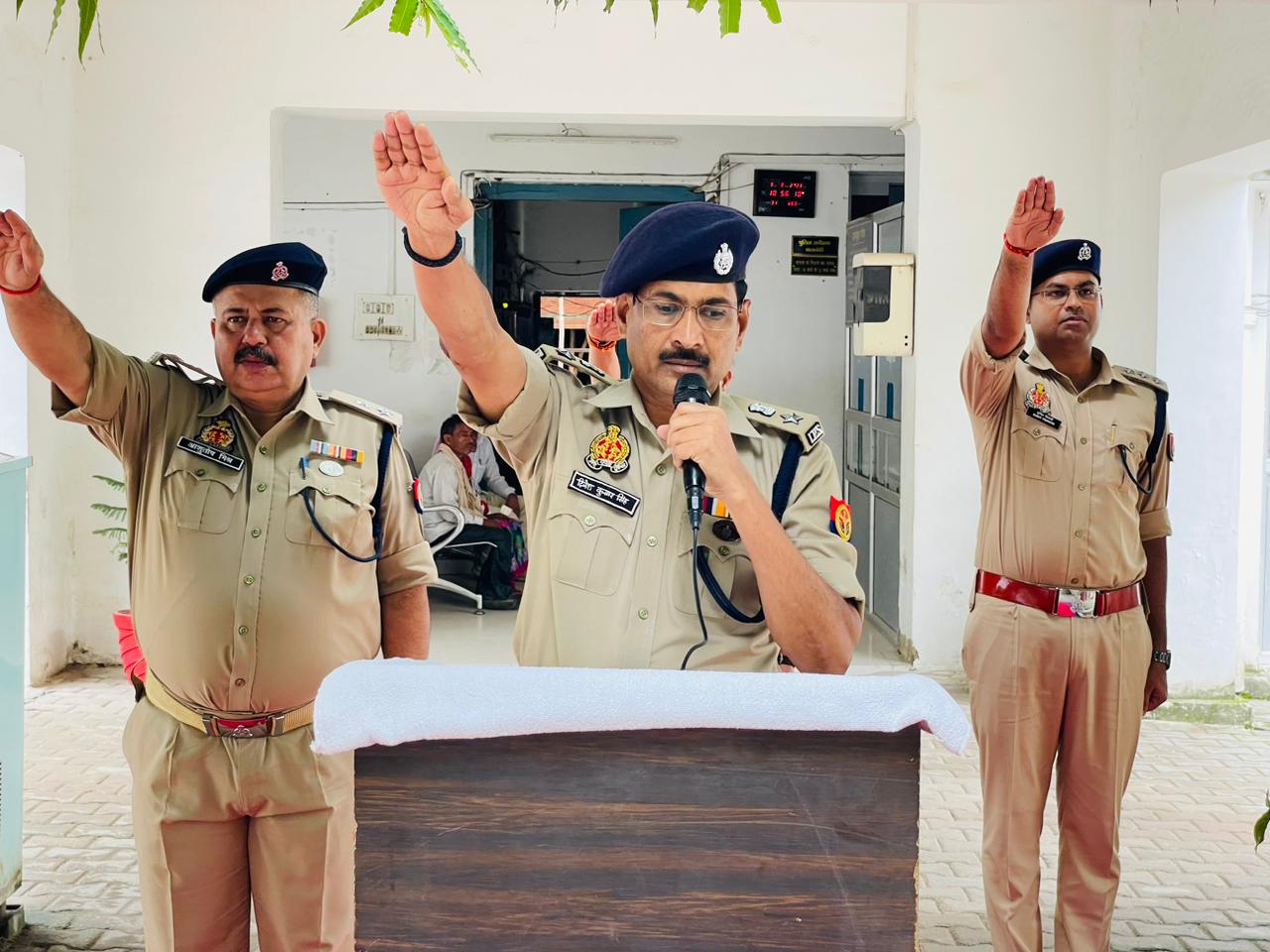 बुधवार को “मेरी माटी, मेरा देश” एवं “हर घर तिरंगा अभियान” के अन्तर्गत पुलिस कार्यालय प्रांगण में पंचप्रण शपथ कार्यक्रम का आयोजन किया गया। पुलिस अधीक्षक बाराबंकी दिनेश कुमार सिंह द्वारा उपस्थित समस्त अधिकारियों एवं कर्मचारियों को अमृत काल के पंचप्रण (1. विकसित भारत का लक्ष्य, 2. गुलामी के हर अंश से मुक्ति, 3. अपनी विरासत पर गर्व, 4. एकता और एकजुटता, 5. नागरिकों में कर्तव्य की भावना) की शपथ दिलाई गई एवं अपर पुलिस अधीक्षक, दक्षिणी डॉ0 अखिलेश नरायण सिंह द्वारा पुलिस लाइन्स में एवं समस्त क्षेत्राधिकारी, थाना प्रभारियों द्वारा अपने-अपने कार्यालय/थाना प्रांगण में कार्यक्रम का आयोजन कर कर्मचारियों को पंचप्रण की शपथ दिलाई गई।