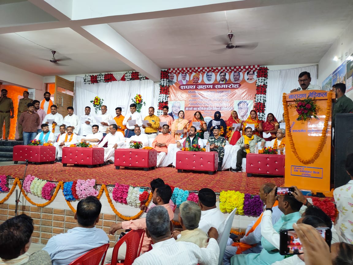 बहराइच (राष्ट्र की परम्परा) नवनिर्मित रुपईडीहा नगर पंचायत के नवनिर्वाचित चेयरमैन व सभासदों का शपथ ग्रहण समारोह भब्यता के साथ संपन्न हुआ। सपथ ग्रहण समारोह के मुख्य अतिथि सांसद बहराइच अक्षयवर लाल गौड़ व विशिष्ट अतिथि राष्ट्रीय हिंदू वाहिनी संघ के राष्ट्रीय अध्यक्ष गोपाल शुक्ला, विधायक नानपारा रामनिवास वर्मा, एसएसबी 42वी वाहिनी कमांडेंट तपन दास, सहकारी समिति जिलाध्यक्ष बहराइच घनश्याम सिंह रहे। रूपईडीहा नगर पंचायत अध्यक्ष व सभासदो सहित कुल 16 लोगों को रुपईडीहा के विनायक मैरेज हॉल में शपथ दिलाई गई। नगर पंचायत अध्यक्ष के तौर पर डॉ उमाशंकर वैश्य सहित गोकुलपुर सभासद महिमा वर्मा, पचपकड़ी सभासद ननकी देवी, दीनदयाल नगर सभासद जान मोहम्मद, राम जानकी नगर सभासद नरेंद्र मदेसिया, आजाद नगर सभासद राजकुमार गुप्ता, आदर्श नगर सभासद रजा इमाम, रुपैडीहा सभासद जाकिर हुसैन, विवेकानंद नगर सभासद जहीर अहमद, सरस्वती नगर सभासद परवीन बानो, साकेत नगर सभासद साहिस्ता हाशमी, केवलपुर सभासद सीमा देवी, निधि नगर सभासद फूलमता, जमुनहा सभासद मनोज कुमार, दशहरा बाग सभासद ध्रुव राज वर्मा, अटल अगर सभासद प्रज्ञा त्रिपाठी को एसडीएम माहसी राकेश मौर्य ने शपथ दिलाई। शपथ ग्रहण समारोह के साथ ही रूपईडीहा नगर पंचायत को अब चुनी हुई सरकार मिल गई। शपथ लेने के बाद रूपईडीहा नगर पंचायत अध्यक्ष डॉ उमाशंकर वैश्य ने कहा कि अभी हमारा शपथ ग्रहण समारोह संपन्न हुआ है जो भी क्षेत्र की समस्या है उसका हम लोग मिलकर निदान करेंगे और एक बेहतर नगर पंचायत बनाएंगे।समारोह को सभी मुख्य व विशिष्ट अतिथियों ने संबोधित कर नवनिर्मित नगर पंचायत में भाजपा की सरकार बनाने के लिये रुपईडीहा की जनता व भाजपा के कार्यकर्ताओं को धन्यवाद ज्ञापित किया। इस मौके पर भाजपा पदाधिकारी व कार्यकर्त्ता सहित क्षेत्र के गणमान्य व संभ्रांत लोग उपस्थित रहे।