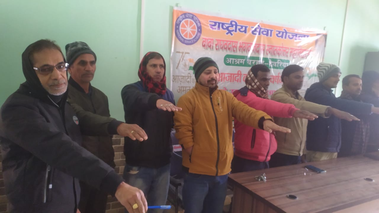 गुरुवार को सड़क सुरक्षा यातायात के लिए बाबा राघव दास भगवान दास स्नातकोत्तर महाविद्यालय आश्रम बरहज में, राष्ट्रीय सेवा योजना कार्यक्रम के अधिकारी डॉ विनीत पाण्डेय ने छात्र छात्राओं को सड़क सुरक्षा के लिए शपथ दिलाया। छात्र छात्राओं ने इस बात के लिए शपथ लिया कि हेलमेट लगाकर गाड़ी चलाएंगे, साथ ही सुरक्षा का भी ध्यान रखेंगे। शपथ कार्यक्रम महाविद्यालय के कांफ्रेंस हाल में डॉक्टर धनन्जय तिवारी, डॉ अब्दुल हसीब, डॉ विनय तिवारी, डॉक्टर विवेकानंद पाण्डेय, डॉ अनुज श्रीवास्तव, डॉक्टर बृजेश यादव, डॉक्टर संजीव कुमार, रविंद्र मिश्रा, निकेश सिंह, प्रदीप शुक्ला, मनीष श्रीवास्तव, विनय मिश्र, राजीव पाण्डेय, सहित कर्मचारी गण के साथ अंजली पाठक, अंशिका पाण्डेय, गरिमा पाण्डेय, खुशी मिश्रा, जागृति राय, पिंकी गौड़, शीतल गौड़, तनु पाण्डेय, श्वेता कुशवाहा, रजनी गिरी, रजनीकांत, अभिषेक, दिव्या मद्धेशिया, ज्योति जयसवाल, तनु रावत,आदि तमाम छात्र छात्राएं एवं कर्मचारी गण उपस्थित रहे। इस कार्यक्रम का आयोजन राष्ट्रीय सेवा योजना महाविद्यालय इकाई द्वारा आयोजित किया गया।
