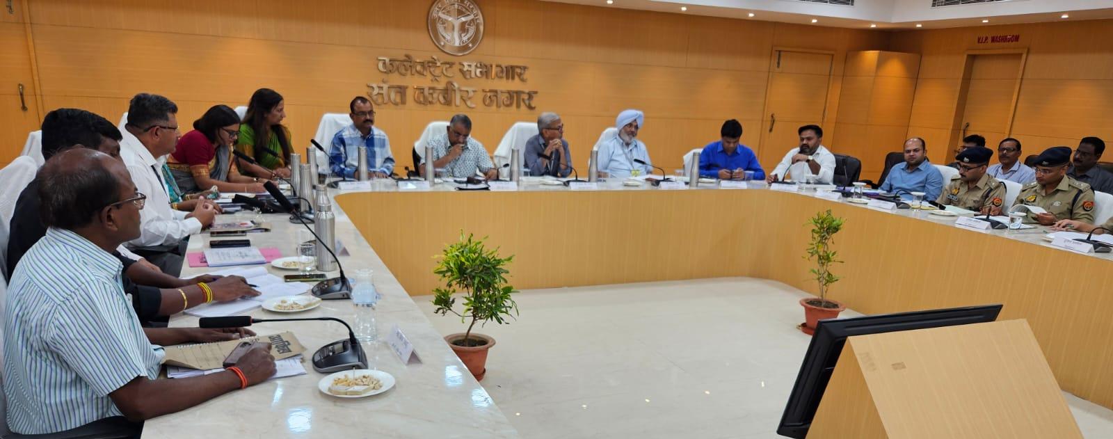 संत कबीर नगर (राष्ट्र की परम्परा)। लोक सभा सामान्य निर्वाचन-2024 को स्वतंत्र, निष्पक्ष, पारदर्शी एवं भयमुक्त वातावरण में शांतिपूर्ण ढ़ग से सम्पन्न कराने के दृष्टिगत भारत निर्वाचन आयोग द्वारा नामित विशेष प्रेक्षक (सामान्य) अजय वी0 नायक, विशेष प्रेक्षक (व्यय) राजेश टुटेजा एवं विशेष प्रेक्षक (पुलिस) मनमोहन सिंह की संयुक्त अध्यक्षता में तीनों जनपदों के प्रेक्षकगण जिसमे 60-डुमरियागंज संसदीय निर्वाचन क्षेत्र हेतु नामित प्रेक्षक (सामान्य) नीमा अरोड़ा, प्रेक्षक (पुलिस) एस. मल्लिखा एवं प्रेक्षक (व्यय) वाई. आनन्द जी., 61-बस्ती संसदीय निर्वाचन क्षेत्र हेतु नामित प्रेक्षक (सामान्य) बबिता, प्रेक्षक पुलिस रमेश चन्द्र छाटजा (बस्ती एवं संत कबीर नगर संसदीय निर्वाचन क्षेत्र) एवं प्रेक्षक (व्यय) आरएल अरूण प्रसाद एवं 62-संत कबीर नगर संसदीय निर्वाचन क्षेत्र हेतु नामित प्रेक्षक (सामान्य) जनक प्रसाद पाठक एवं प्रेक्षक (व्यय) ब्रज किशोर सिंह तथा रिटर्निंग ऑफिसर/जिला मजिस्ट्रेट 60-डुमरियागंज संसदीय निर्वाचन क्षेत्र पवन अग्रवाल, रिटर्निंग ऑफिसर/जिला मजिस्ट्रेट 61-बस्ती संसदीय निर्वाचन क्षेत्र अंद्रा वामसी, रिटर्निंग ऑफिसर/जिला मजिस्ट्रेट 62-संत कबीर नगर संसदीय निर्वाचन क्षेत्र महेन्द्र सिंह तवंर व पुलिस अधिक्षक बस्ती गोपाल कृष्ण चौधरी, पुलिस अधीक्षक संत कबीर नगर सत्यजीत गुप्ता व पुलिस अधीक्षक सिद्धार्थनगर सुश्री प्राची सिंह के साथ कलक्ट्रेट सभागार, संत कबीर नगर में लोकसभा सामान्य निर्वाचन-2024 की तैयारियों, निर्वाचन आयोग के दिशा-निर्देशों का अनुपालन, आदर्श आचार संहिता का अनुपालन, सुरक्षा एवं कानून व्यवस्था का अनुपालन सहित मतदान दिवस के पूर्व एवं मतदान दिवस के दिन से सम्बन्धित विभिन्न व्यवस्थाओं/सुविधाओं सहित भयमुक्त वातावरण में सम्पुर्ण निर्वाचन प्रक्रिया को सम्पन्न कराये जाने से सम्बन्धित सभी बिन्दुओं पर विस्तृत चर्चा/समीक्षा बैठक आयोजित हुई।
