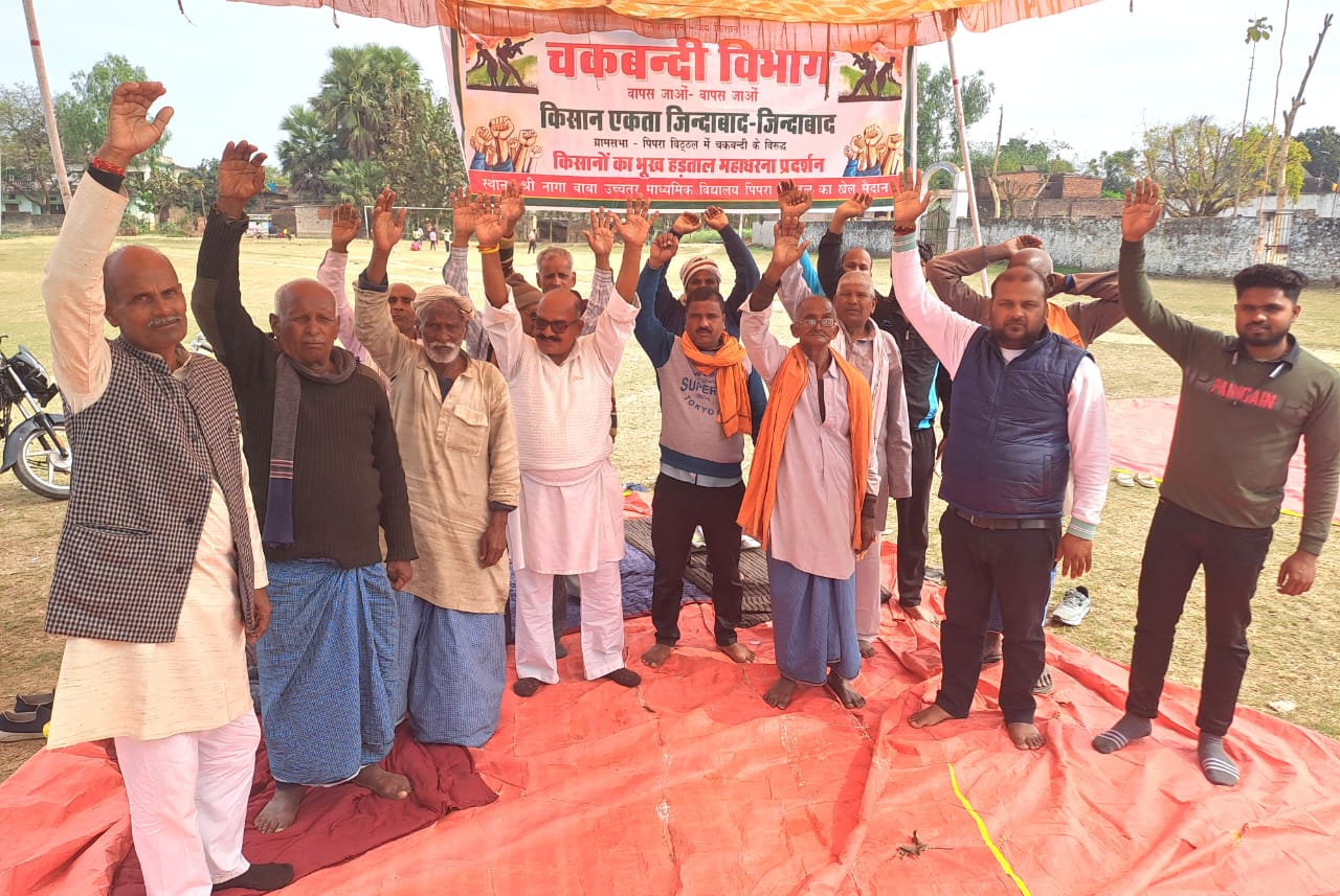 इसके विरोध में किसान दिनांक 26 -2- 2024 से कर्मीक भुख अनशन सुबह 10:00 से शाम 5:00 बजे तक जारी है । इनका कहना है की जब तक कोई उच्च अधिकारी आकर हमारी समस्या का समाधान नहीं करते तब तक हमारा अनशन जारी रहेगा और जरूरत पड़ी तो हम सब अमरण अनशन करने के लिए बाध्य होंगे आज दिनांक 3 -3 -2024 को हरिशंकर सिंह क्रमिक भूख अनशन पर हैं जिसकी अध्यक्षता पवन कुमार यादव सदस्य क्षेत्र पंचायत भटनी कर रहे हैं। हरिशंकर सिंह ने कहा की हम सभी ग्राम वासी गहना बेचना बेचना पड़ेगा और हम लोगों का सिर्फ शोषण होगा और उत्पीड़न होगा,विंध्याचल यादव का कहना है चकबंदी विभाग लूट खसोट करने के लिए परेशान हैं किसानों के घर का रुपया गहना बेचवा देंगे कुछ हासिल नहीं होगा सिर्फ हमारा उत्पीड़न ही होगा इसीलिए हम विरोध कर रहे हैं !