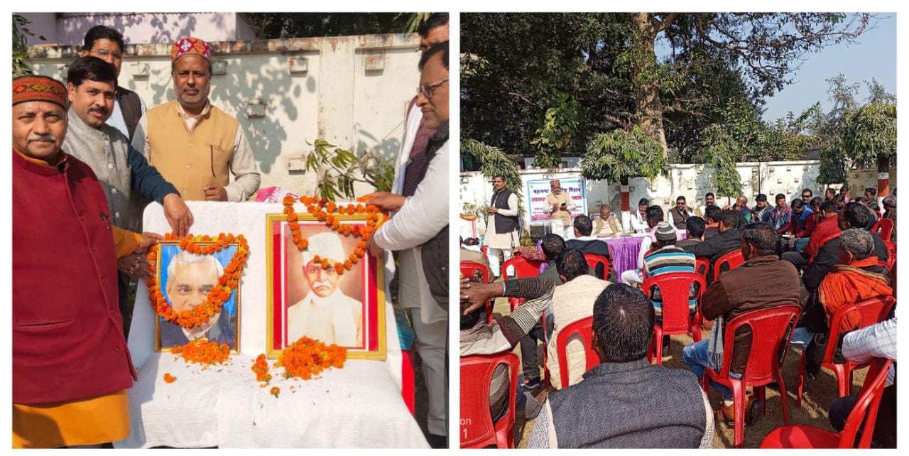 भाजपा जिलाध्यक्ष श्याम करण टेकड़ीवाल ने महामना मालवीय एवं भारत रत्न पंडित अटल बिहारी वाजपेयी को राष्ट्र नायक बताते हुए उन्हें स्वतन्त्र भारत का नव निर्माता बताया और उपस्थित लोगों से दोनों महापुरुषों के पदचिन्हों पर चलकर राष्ट्र व समाज को मजबूत बनाने का आग्रह किया।