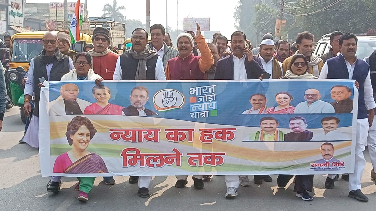 अखिल भारतीय कांग्रेस कमेटी के पूर्व अध्यक्ष राहुल गांधी के नेतृत्व में चलाये जा रहे भारत जोड़ो न्याय यात्रा के समर्थन में 26 जनवरी से 30 जनवरी निकाले गए न्याय यात्रा जिले के हर ब्लॉक, शहर के हर वार्ड होते हुए, मंगलवार 30 जनवरी को महात्मा गांधी के पुण्य तिथि पर जिलाध्यक्ष रामजी गिरी व शहर अध्यक्ष आनन्द श्रीवास्तव सोनू के संयुक्त नेतृत्व में जिला कांग्रेस कार्यालय से भारत जोड़ो न्याय यात्रा निकाल कर नगर पालिका स्थित गांधी प्रतिमा पर माल्यार्पण किया गया और उनके प्रतिमा के सामने बैठ कर राम धुन गाकर यात्रा का समापन किया गया।