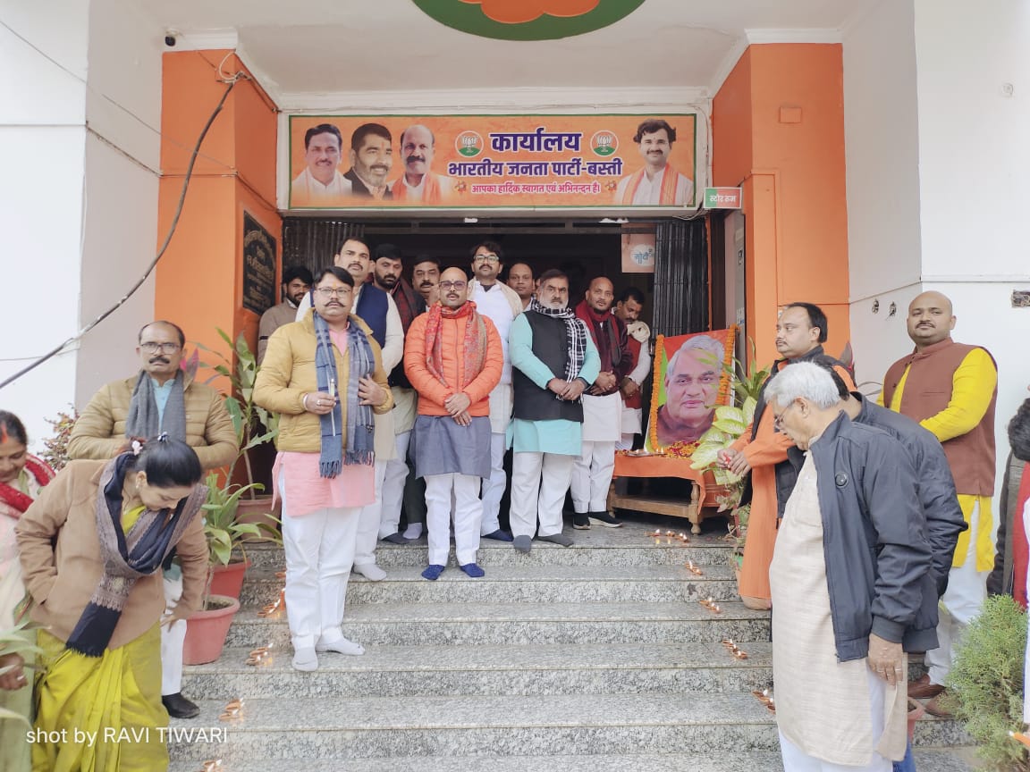 बस्ती (राष्ट्र की परम्परा) देश के पूर्व प्रधानमंत्री एवं भारत रत्न श्रद्धेय अटल बिहारी वाजपेयी जी के जन्म शताब्दी वर्ष की पूर्व संध्या के अवसर पर जनपद बस्ती में अटल बिहारी वाजपेयी प्रेक्षागृह एवं भारतीय जनता पार्टी कार्यालय पर भव्य दीपोत्सव कार्यक्रम का आयोजन किया गया। कार्यक्रम की अध्यक्षता भाजपा जिलाध्यक्ष विवेकानन्द मिश्र ने की, जबकि पूर्व सांसद हरीश द्विवेदी दोनों स्थानों पर बतौर मुख्य अतिथि उपस्थित रहे।