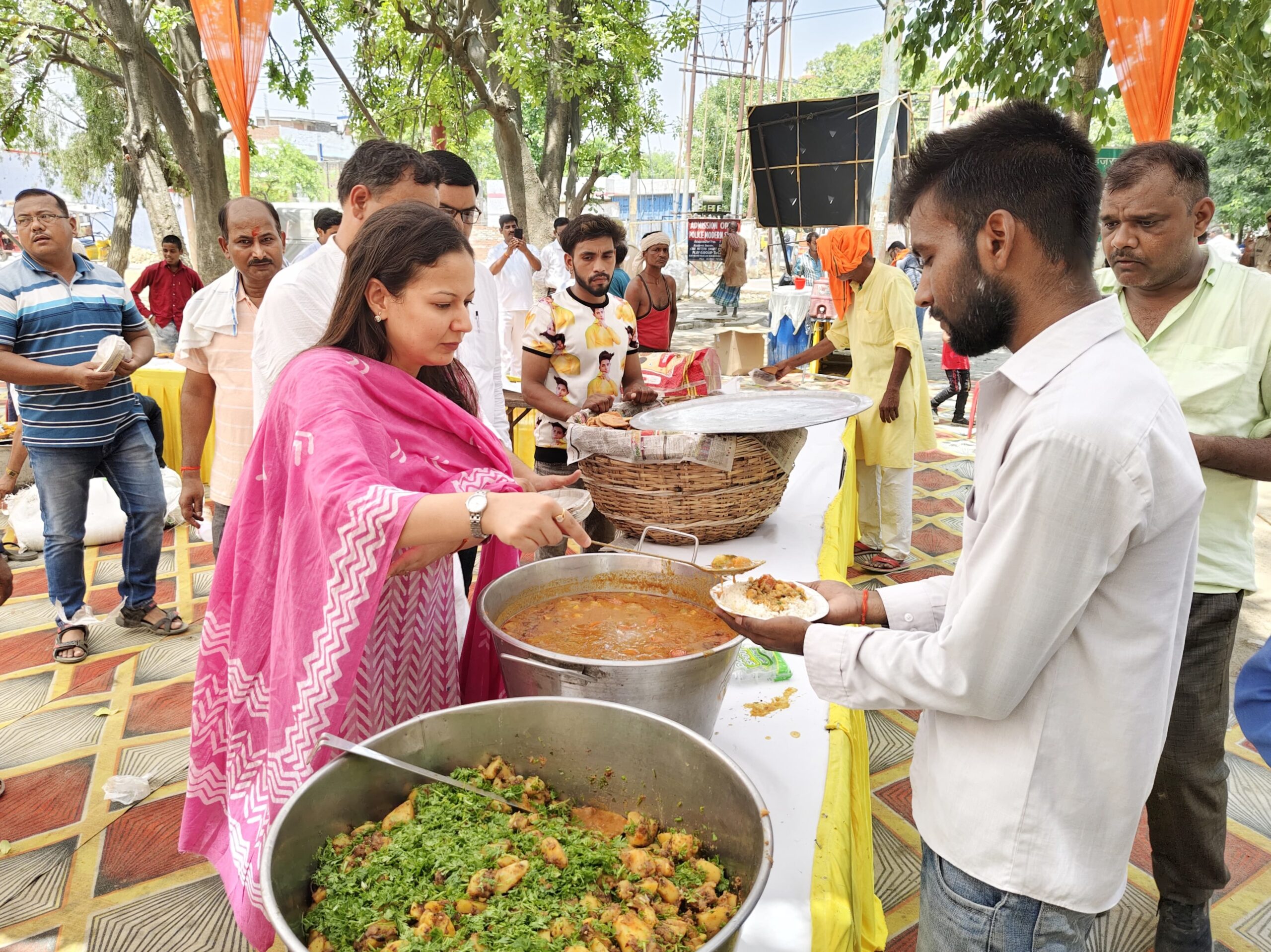 बहराइच(राष्ट्र की परम्परा) पुलिस लाइन के बेरिया मन्दिर पर ज्येष्ठ माह के चतुर्थ बड़ा मंगल पर पुलिस उपाधीक्षक रेडियो मनोज कुमार गुप्ता द्वारा भण्डारे का आयोजन किया गया। इस मौके पर वृन्दा शुक्ला पुलिस अधीक्षक बहराइच द्वारा पुलिस लाइन बेरिया माता मन्दिर में हनुमान जी की पूजा-अर्चना कर समस्त जनमानस के कुशल-मंगल की कामना की गयी तत्पश्चात भंडारे का आयोजन किया गया । चतुर्थ मंगलवार को महा भंडारे का आयोजन कर प्रसाद वितरण किया गया l पुलिस अधीक्षक व पुलिस कर्मचारियों ने प्रसाद वितरण कर भगवान श्री हनुमान जी से प्रार्थना कर इस भीषण गर्मी से आमजन मानस को राहत मिले इसी कामना कि l इस अवसर पर पुलिस उपाधीक्षक रेडियो मनोज कुमार गुप्ता,महिला थाना प्रभारी मंजू यादव व रेडियो शाखा के कर्मचारीगण मौजूद रहे ।