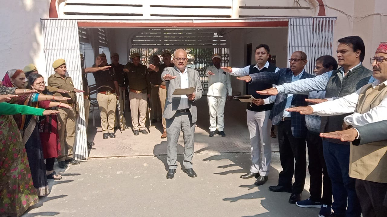 जिलाधिकारी जितेन्द्र प्रताप सिंह द्वारा संविधान दिवस के अवसर पर शनिवार को कलेक्ट्रेट परिसर में उपस्थित अधिकारियों एवं कर्मचारियों को ‘‘सविधान की उद्देशिका’’ की शपथ दिलाई गई।