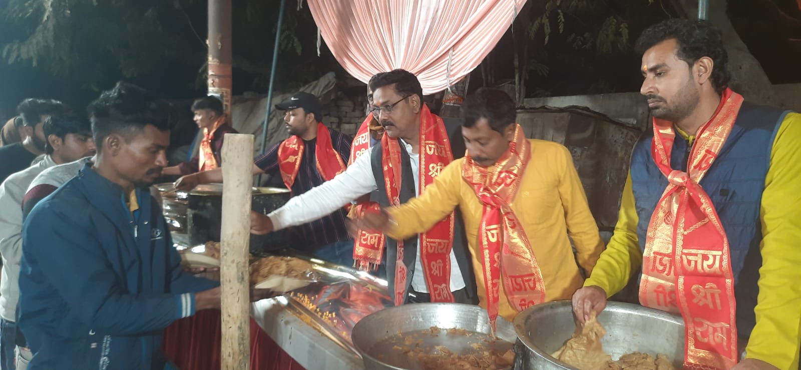 मऊ (राष्ट्र की परम्परा)। जिले के नगर क्षेत्र स्थित श्री राम मंदिर पावर हाउस का वार्षिक अनुष्ठान का समापन हो गया । समापन के अवसर पर भंडारे का आयोजन किया गया जिसमें श्रद्धालुओं ने बढ़-चढ़कर भंडारे का प्रसाद ग्रहण किया । मंदिर को विधिवत रूप से सजाया गया था वहीं हनुमान मंदिर सहित सभी देवी देवताओं की साज सज्जा की गई थी जो की काफी मनमोहक एवं आकर्षक लग रही थी । देर रात्रि तक मंदिर में भक्ति संगीत का आयोजन चलता रहा जिसमें श्रद्धालुओं ने भगवान के भक्ति गीतों पर खूब झूमते रहे । भगवान के भक्ति गीतों से पूरा वातावरण भक्ति में हो गया था । इस अवसर पर मंदिर के मुख्य पुजारी अभिचल पांडेय उर्फ गोलू महाराज ने बताया कि श्री राम मंदिर पावर हाउस का आंठवें वार्षिक अनुष्ठान के समापन के अवसर पर रुद्राभिषेक के साथ महायज्ञ का आयोजन किया गया । जिसके बाद शाम विशाल भंडारे का आयोजन हुआ । भगवान को भोग लगाने के बाद यह प्रसाद भंडारे के रूप में श्रद्धालुओं को वितरित किया गया । मान्यता है कि भगवान का प्रसाद ग्रहण करने से सबके दुख दूर होते हैं और सबकी मनोकामनाएं पूर्ण होती हैं । कार्यक्रम में मुख्य रूप से वाराणसी से पधारे आचार्य मनोज शास्त्री, पंडित पंकज शास्त्री , ब्रजकिशोर , जितेंद्र त्रिपाठी , दीपक गर्ग , पंकज चौबे , राघवेंद्र मिश्रा , वैराग्य वर्धन दुबे , सुनील दुबे , गौरव सिंह , दिलीप पांडेय , पूर्व सभासद राकेश तिवारी , अभिकल पाण्डेय , रवि केसरवानी , सत्यम पाण्डेय , के के राय , हिमांशु शर्मा , गोपाल पांडेय , राजेश सिंह , आदि लोग मौजूद रहे ।