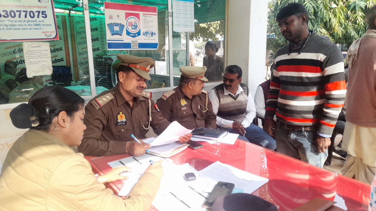 आजमगढ (राष्ट्र की परम्परा)l जीयनपुर कोतवाली में शनिवार को सगड़ी क्षेत्राधिकारी सौम्या सिंह व जीयनपुर कोतवाल यादवेंद्र पाण्डेय के नेतृत्व में थाना परिसर में समाधान दिवस का आयोजन किया गया, जिसमें फरियादियों की समस्याओं का बारी-बारी से देखा गया। वहीं राजस्व से संबंधित मामलों को उपस्थित संबंधित लेखपाल को प्रेषित किया गया तत्पश्चात अति शीघ्र निस्तारण करने का निर्देश दिया गया। इस मौके पर पुलिस संबंधित प्रार्थना पत्रों पर त्वरित निस्तारण करने का निर्देश दिया गया।जानकारी के अनुसार इस दौरान 9 प्रार्थना पत्र आये जिसमें 4 का मौके पर निस्तारण कर दिया गया।