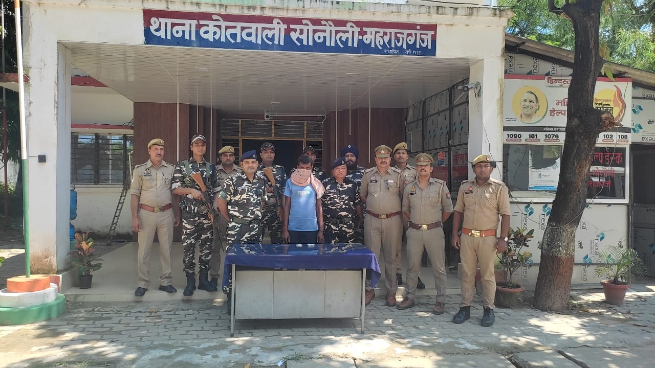 महराजगंज (राष्ट्र की परम्परा)। सोनौली पुलिस और एस एस बी की संयुक्त टीम ने शुक्रवार को क्षेत्र मे अवैध तस्करी रोकथाम देखभाल हेतु चलाये गये अभियान के तहत थाना क्षेत्र के सीमावर्ती ग्राम पंचायत बरगदही स्थित मुर्गी फार्म के पास से संयुक्त टीम ने जांच के दौरान नेपाल निवासी पशुपति पुत्र जनार्दन निवासी वार्ड नं 3 माया देवी गांव पालिका कम्हरिया थाना बिथरी जिला रुपन देही राष्ट्र नेपाल के पास से 12 ग्राम नाजायज अवैध हिरोइन बरामद कर पकड़े गये अभियुक्त को हिरासत मे लेकर कोतवाली लाई और आरोपी व्यक्ति पर स्थानीय थाना में मुकदमा अपराध संख्या 136/23 की धारा 8/22/23 एनडीपीएस एक्ट के तहत कार्यवाही कर आरोपी को महराजगंज न्यायालय रवाना कर दिया। पुलिस टीम मे उपनिरीक्षक गंगाराम यादव ,चौकी प्रभारी खनुआ उप निरीक्षक अखिलेश प्रताप सिंह ,हेड कॉन्स्टेबल रमाशंकर यादव, कान्स्टेबल विकास कुमार ,विशाल सिंह, धर्मेंद्र यादव ,संजीव सिंह, वही एस एस बी टीम मे सहायक कमांडेंट राम बहादुर गुरुगं, निरीक्षक सामान्य उत्तम कुमार सिंह, हेड कांस्टेबल जीडी राम तिलक मौर्य, कांस्टेबल जीडी सुरेश कुमार ,कांस्टेबल जीडी संदीप वर्मा आदि मौजूद रहे।