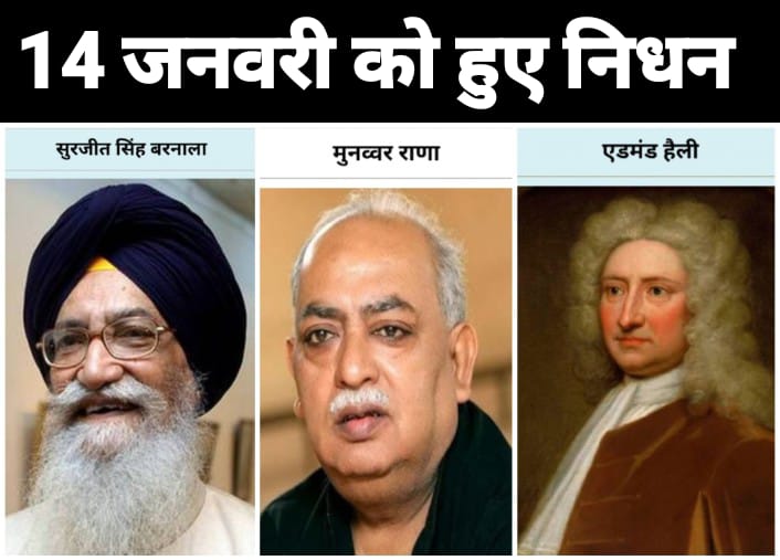 14 जनवरी के ऐतिहासिक निधन: मुनव्वर राणा, सुरजीत सिंह बरनाला और एडमंड हैली — साहित्य, राजनीति और विज्ञान की अमर विरासत