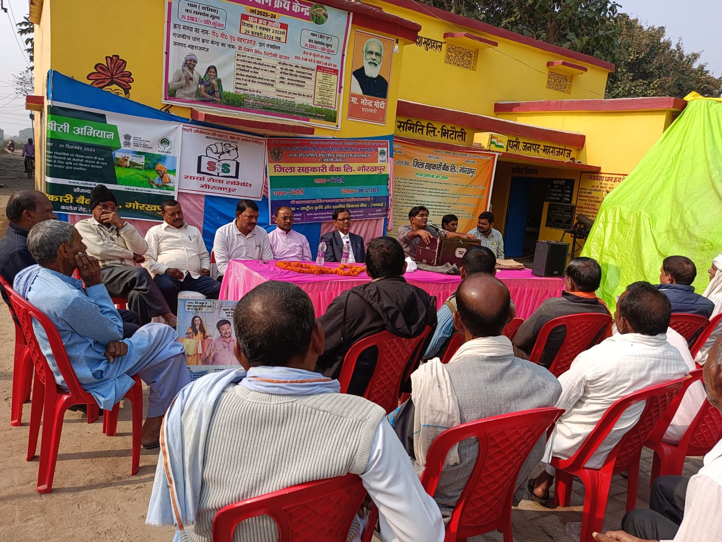 महराजगंज ( राष्ट्र की परम्परा)। जिला सहकारी बैंक लिमिटेड गोरखपुर के तत्वावधान में भिटौली साधन सहकारी समिति पर नाबार्ड द्वारा एक दिवसीय वित्तीय साक्षरता शिविर का आयोजन शनिवार को किया गया। जिसकी अध्यक्षता भिटौली साधन सहकारी समिति के अध्यक्ष ठाकुर प्रसाद रौनियार ने किया। मुख्य अतिथि जिला सहकारी बैंक भिटौली के शाखा प्रबंधक हरिश्चंद्र वर्मा रहें। बतौर मुख्य अतिथि ने अपने संबोधन में किसानों को केसीसी ऋण, पशुपालन व मत्स्य पालन पर केसीसी ऋण,इफको खाद के प्रत्येक बोरी पर चार हजार रुपए का दुर्घटना बीमा, प्रधानमंत्री फसल बीमा, प्रधानमंत्री जीवन ज्योति, प्रधानमंत्री सुरक्षा बीमा, कैशलेश ट्रांजेक्शन ,समिति के सदस्य कैसे बनें, एटीएम कार्ड के प्रयोग एवं सावधानियों के बारे में किसानों को बताया। श्याम अचल ने लोकगीत के माध्यम से किसानों को जागरूक किया। इस दौरान समिति के सचिव रामरतन चौधरी, सहायक सचिव राजबहादुर यादव, लिपिक हरिश्चंद्र यादव, सुशील शुक्ल,ग्राम प्रधान स्वामीनाथ गुप्ता, पूर्व प्रधान आशीष गौतम, सुग्रीव चौबे, ओमप्रकाश चौबे, सुखराज यादव , व्यास मुनि,मिश्री लाल,मुनीब चंद्र,हदीश अली सहित तमाम लोग मौजूद रहें।