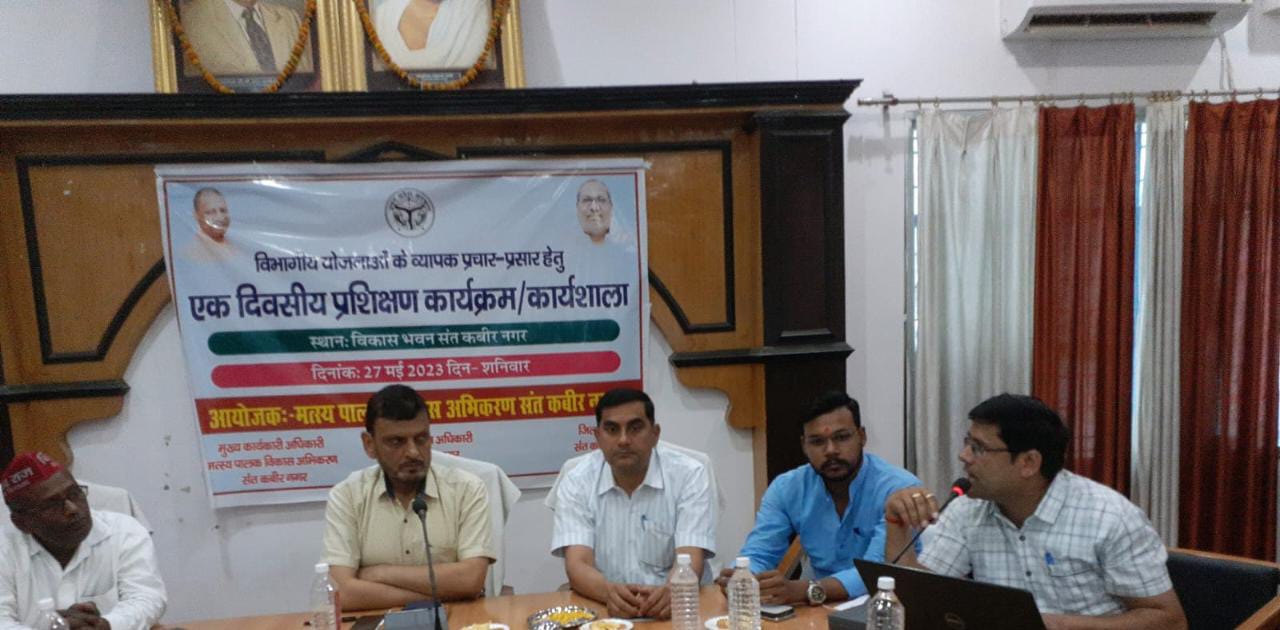 संत कबीर नगर (राष्ट्र की परम्परा)। प्रभारी जिला विकास अधिकारी जीशान रिजवी की अध्यक्षता में मत्स्य पालकों के लिये एक दिवसीय प्रशिक्षण कार्यक्रम विकास भवन सभागार में आयोजित हुआ। जिसमें मुख्य कार्यकारी अधिकारी मत्स्य, विजय कुमार मिश्रा द्वारा विभिन्न योजनाओं की विस्तृत जानकारी दी गई। मत्स्य विभाग द्वारा संचालित प्रधान मंत्री मत्स्य संपदा योजना, मुख्यमंत्री मत्स्य संपदा योजना ,निषादराज बोट योजना ,मछुआ कल्याण कोष योजना के प्रचार प्रसार एवं उक्त सभी योजनाओं में ऑनलाइन आवेदन किस प्रकार किया जाएl इसकी विस्तृत जानकारी दी गयी।