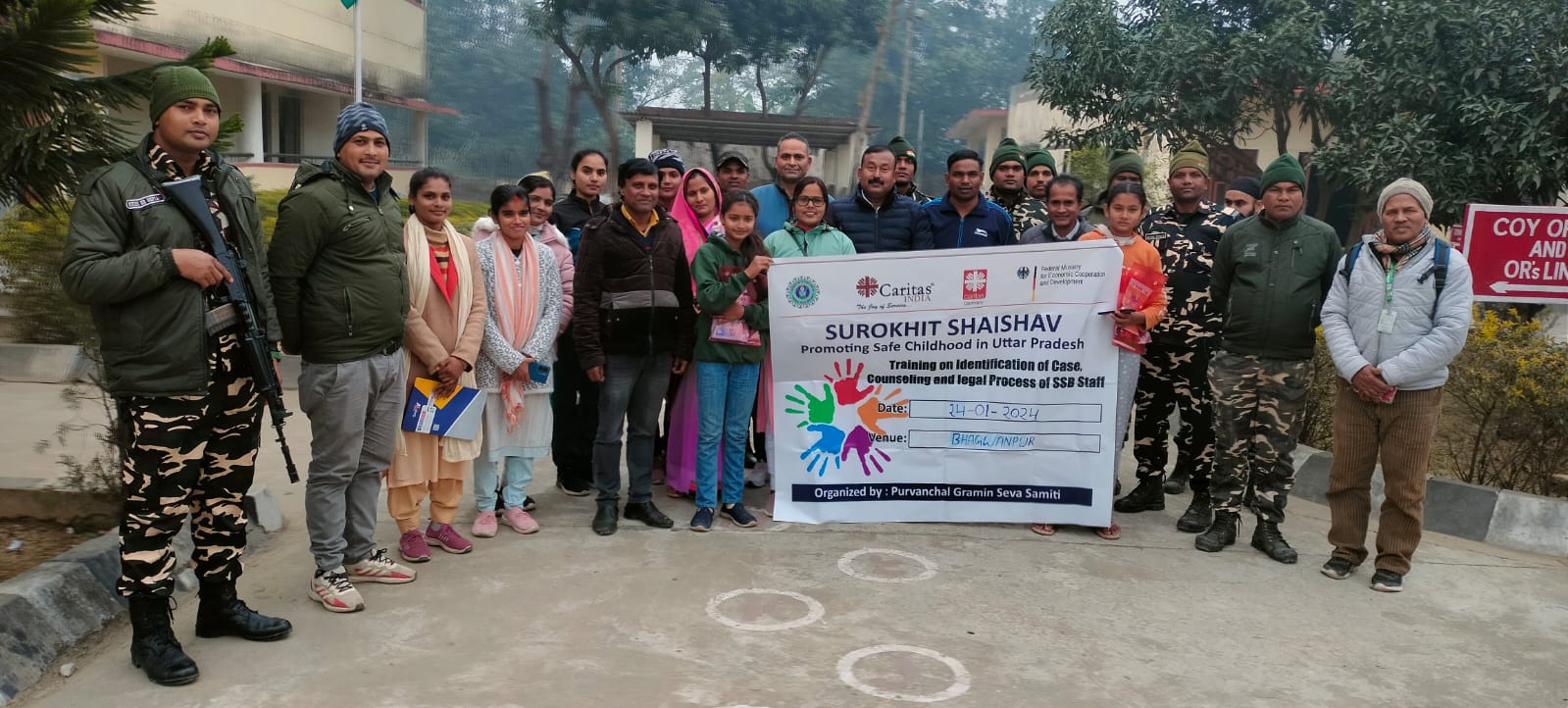 महराजगंज(राष्ट्र की परम्परा)।पूर्वांचल ग्रामीण सेवा समिति शाखा नौतनवां द्वारा संचालित सुरोखित शैशव कार्यक्रम के तहत मानव तस्करी केस की पहचान के लिए एसएसबी 22 वीं बटालियन भगवानपुर में जवानों का एक दिवसीय प्रशिक्षण बीओपी भगवानपुर के प्रभारी हंसराज के नेतृत्व में आयोजित हुई। जिसमे एसएसबी के एचटीयू इंस्पेक्टर एम सी सरकार द्वारा उदहारण एवं प्रेक्टिकल देते हुए मानव तस्करी केस में पीड़ितों के काउंसलिंग के बिषय में जानकारी दी गयी तथा मिशन वात्सल्य योजना के सन्दर्भ में दक्षता बढ़ायी गई। एसएसबी प्रभारी ने बताया कि इस प्रशिक्षण का उद्देश्य सुरक्षा एजेंसियों का क्षमता वर्धन करना है। पूर्वांचल ग्रामीण सेवा समिति के बाल संरक्षण अधिकारी श्रवण कुमार ने खेल,रोल प्ले एवं समूह चर्चा के माध्यम से बाल तस्करी, बाल श्रम,बाल विवाह, बाल यौन और शोषण, बाल शोषण पर फोकस करते हुए कानूनी प्रक्रिया, किशोर न्याय (देखभाल एवं संरक्षण) अधिनियम 2015, यौन अपराधों से बच्चों का संरक्षण अधिनियम 2012 पर संक्षिप्त में क्षमता वर्धन किया। हेल्पलाइन नंबर 1098, 112,181, 1903 के सन्दर्भ में जागरूक किया गया।