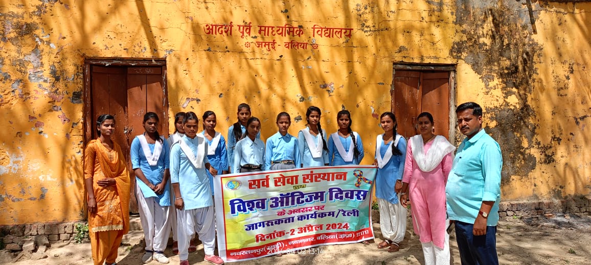 विश्व ऑटिज्म दिवस के अवसर पर सर्व सेवा संस्थान, नवरतनपुर द्वारा ऑटिज्म जागरूकता कार्यक्रम का आयोजन ’आदर्श पूर्व माध्यमिक विद्यालय’, जमुई ग्राम में किया गया। कार्यक्रम के द्वारा स्थानीय लोगों एवं छात्रों को ऑटिज्म वाले विशेष बच्चों के प्रति जागरूक किया गया तथा उनके लक्षण, कारण एवं प्रबन्धन के बारे में बताया गया।