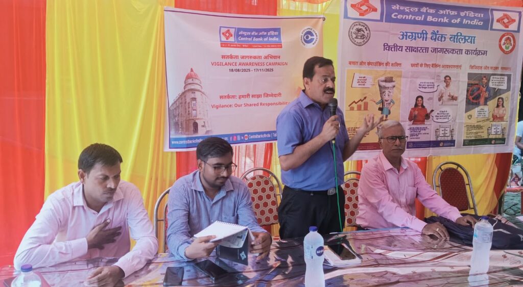 बलिया (राष्ट्र की परम्परा)। अग्रणी बैंक सेंट्रल बैंक ऑफ़ इंडिया के दिशा-निर्देश में तथा नगरा शाखा के तत्वावधान में नगरा विकास खंड के इंदासों गांव में वित्तीय समावेशन संतृप्ति अभियान के तहत वित्तीय साक्षरता एवं जन जागरूकता कार्यक्रम का आयोजन किया गया। कार्यक्रम में ग्रामीणों को प्रधानमंत्री सुरक्षा बीमा योजना, प्रधानमंत्री जीवन ज्योति बीमा योजना, जनधन योजना, सुकन्या समृद्धि योजना, अटल पेंशन योजना, मुद्रा लोन, मुख्यमंत्री युवा उद्यमी योजना जैसी विभिन्न सामाजिक योजनाओं की जानकारी दी गई। साथ ही ऑनलाइन लेन-देन के दौरान होने वाली ठगी और बैंकिंग फ्रॉड से बचाव के उपाय भी बताए गए। जिला अग्रणी बैंक प्रबंधक सुशील कुमार ने कहा कि कम प्रीमियम पर बैंकों की सामाजिक सुरक्षा योजनाओं से बड़ा लाभ उठाया जा सकता है। उन्होंने विशेष रूप से प्रधानमंत्री सुरक्षा बीमा योजना का उल्लेख करते हुए बताया कि मात्र 20 रुपये सालाना प्रीमियम पर दो लाख रुपये का दुर्घटना बीमा मिलता है। उन्होंने ग्रामीणों से बचत की आदत डालने और खाते में नॉमिनी जोड़ने की अपील की। साथ ही यह भी बताया कि खाता चालू रखने के लिए छह माह में कम-से-कम एक बार लेन-देन करना आवश्यक है। मुख्यमंत्री युवा उद्यमी योजना के बारे में उन्होंने कहा कि इस योजना से युवाओं को पांच लाख रुपये तक का ब्याजमुक्त ऋण उपलब्ध कराया जा रहा है, जिससे वे उद्योग-धंधा शुरू कर अपने सपनों को साकार कर सकते हैं। एफएलसीसी प्रभारी अनिल शुक्ला ने उपस्थित लोगों को ऑनलाइन धोखाधड़ी से बचने के तरीके समझाए और किसी भी अनजान व्यक्ति से ओटीपी साझा न करने की सलाह दी।