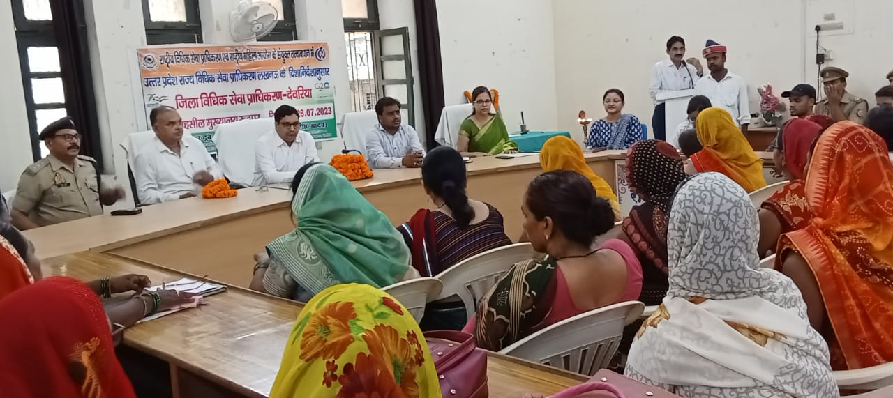 बुधवार को राष्ट्रीय विधिक सेवा प्राधिकरण नई दिल्ली एवं राष्ट्रीय महिला आयोग के सयुक्त तत्वाधान मे राज्य विधिक सेवा प्राधिकरण लखनऊ के निर्देशानुसार, जनपद न्यायाधीश/अध्यक्ष, जिला विधिक सेवा प्राधिकरण जे0पी0 यादव के मार्गदेशानुसार ज़िला विधिक सेवा प्राधिकरण देवरिया द्वारा रूद्रपुर तहसील में महिलाओं हेतु विधिक साक्षरता /जागरूकता कार्यक्रम एवं सर्वाइकल कैंसर के लक्षण, उपाय तथा बचाव एवं अन्य स्वास्थ से सम्बन्धित व कानूनी सम्बन्धित जागरुकता कार्यक्रम का आयोजन किया गया। उपरोक्त शिविर के सफल आयोजन किये जाने हेतु चिकित्सा विभाग से, डा राजेश गुप्ता, डा० स्वरूपता यादव, वन स्टॉप सेंटर से मीनू जायसवाल तथा दीपक कुमार त्रिपाठी एवं अंजली पाण्डेय को रिर्सोंस परसन के रूप में नामित किया गया । नामित रिर्सोस परसन के द्वारा शिविर में उपस्थित महिलाओं को उनके अधिकारों के बारे में जानकारी प्रदान की गई तथा सचिव /अपर जनपद न्यायाधीश अशोक कुमार दूबे के द्वारा उपस्थित महिलाओं को विधिक रूप से साक्षर किया गया। उनके द्वारा महिलाओ की सुरक्षा, शिक्षा एवं सहायता पर विशेष ध्यान देने हेतु संबंधित को निर्देशित किया गया । सचिव ने कहा कि महिलाओ से संबंधित हितों के लिए सर्वोत्तम दृष्टिकोण अपनाते हुये समुचित देखरेख, संरक्षा, विकास, उपचार तथा समाज से मिलाने हेतु उनको प्रोत्साहित किया जायें।