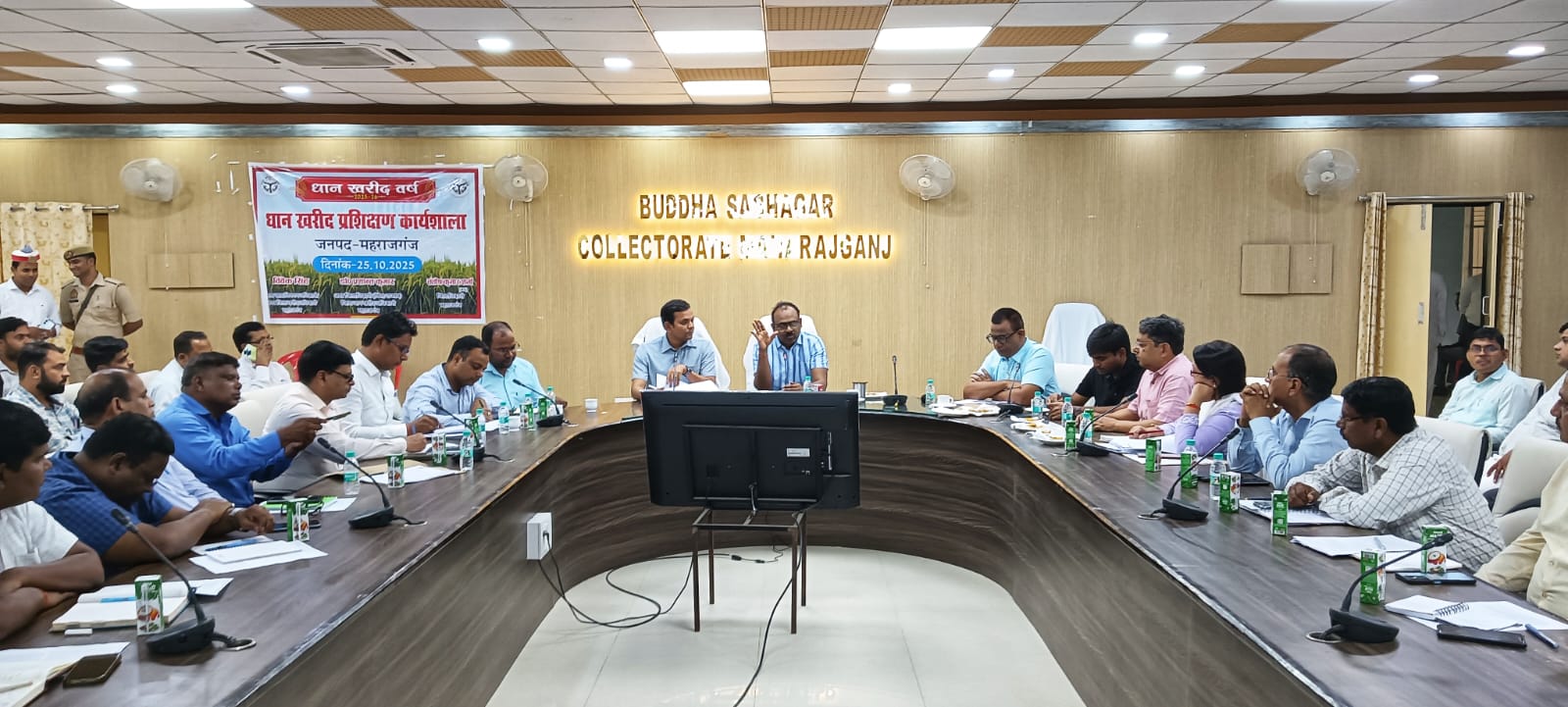 महराजगंज(राष्ट्र की परम्परा)। धान खरीद वर्ष 2025-26 के अंतर्गत जनपद महराजगंज में धान क्रय केंद्रों के संचालन की तैयारियां जोरों पर हैं। इसी क्रम में जिलाधिकारी संतोष कुमार शर्मा की अध्यक्षता में कलेक्ट्रेट सभागार में सभी क्रय केंद्र प्रभारियों का प्रशिक्षण कार्यशाला आयोजित की गई। कार्यशाला में जिलाधिकारी ने सभी केंद्र प्रभारियों को निर्देशित किया कि 31 अक्टूबर 2025 तक केंद्रों की सभी आवश्यक व्यवस्थाएं पूर्ण कर ली जाएं, ताकि 01 नवम्बर 2025 से धान क्रय कार्य सुचारु रूप से प्रारंभ किया जा सके। उन्होंने कहा कि किसानों का उत्पीड़न किसी भी स्थिति को बर्दाश्त नहीं किया जाएगा।
