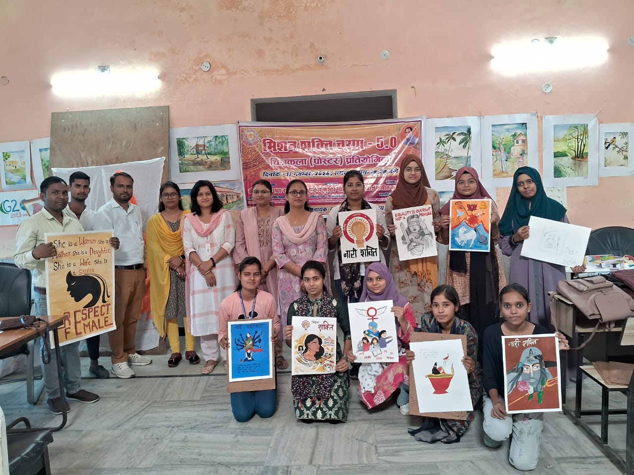 बलिया (राष्ट्र की परम्परा) । जननायक चंद्रशेखर विश्वविद्यालय के ललित कला विभाग में माननीय कुलपति प्रो. संजीत कुमार गुप्ता के संरक्षण और निदेशक शैक्षणिक डॉ. पुष्पा मिश्रा के निर्देशन में चित्रकला (पोस्टर) प्रतियोगिता का आयोजन किया गया l जिसमें बी. ए. के छात्र- छात्राओ सहित विश्वविद्यालय के छात्रों ने भागीदारी किया l इस प्रतियोगिता में नारी सशाक्तिकरण विषय पर पोस्टर का निर्माण किया l प्रतियोगी छात्र- छात्राओ को निर्णायक मण्डल द्वारा प्रथम, द्वितीय, तृतीय एवं सांत्वना पुरस्कार प्रदान किया जायेगा l इस कार्यक्रम की संयोजिका डॉ. अनुराधा राय ने बताया कि मिशन शक्ति 5.0 उत्तर प्रदेश सरकार की एक पहल है l जिसका उद्देश्य महिलाओं और बच्चों को सुरक्षा, सम्मान, और सशक्तिकरण करना है। कार्यक्रम के समन्यवयक पंकज कुमार गौतम ने मिशनशक्ति 5.0 के मिशन को पूरा करने के लिये पोस्टर प्रतियोगिता के माध्यम से प्रतियोगी छात्रों को अपना विचार ब्यक्त करने का सुझाव दिया l उन्होंने कहा की इस संदेश को अपनें आस-पास समाज मे भी प्रसारित प्रचारित करनें पर बल दिया l इस अवसर पर गृहविज्ञान विभाग की विभागाध्यक्ष डॉ. रंजना मल्ल, सहायक प्रोफेसर डॉ. तृप्ति तिवारी, डॉ. विनीत शाही, डॉ. लालविजय सिंह सहित अन्य लोगोँ का सहयोग सराहनीय रहा l