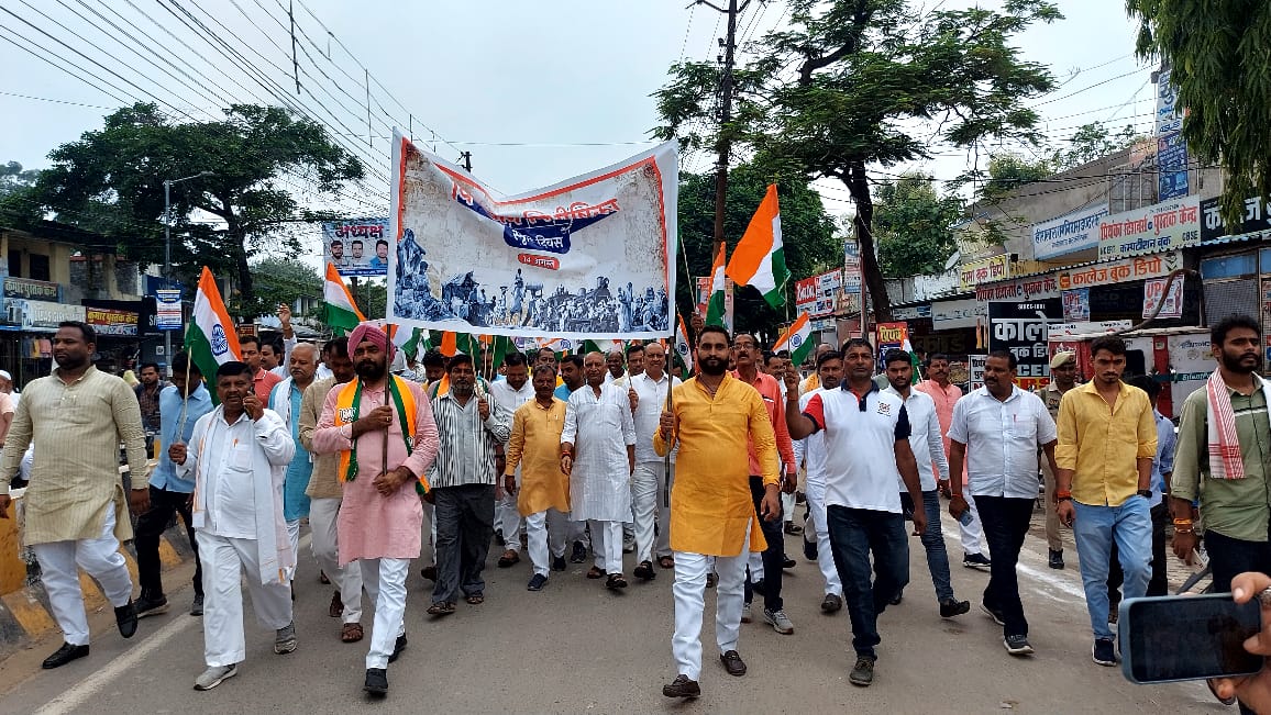 ‘‘विभाजन विभीषिक स्मृति दिवस’’ कार्यक्रम के अन्तर्गत जनप्रतिनिधिगणों सहित अन्य गणमान्य नागरिकों द्वारा हाथों में तिरंगा लेकर ‘‘मौन जुलूस’’ निकाला गया।