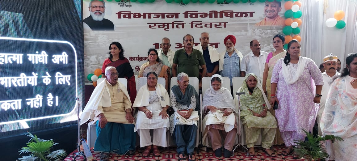बहराइच(राष्ट्र की परम्परा)l 13 अगस्त भारत-पाक बंटवारे की भयानक त्रासदी में अपने प्राणों की आहूति देने वाले नागरिकों के सम्मान तथा भयानक त्रासदी का दंश झेलने वाले परिवारों को ढ़ाढस बंधाने के उद्देश्य से शासन के निर्देश पर नगर पालिका परिषद बहराइच के सभागार में आयोजित किया गया l विभाजन विभीषिका स्मृति दिवस के अवसर पर विभाजन के समय उकाड़ा मंडी से आई सीता भल्ला,फतेहजंग से चन्द्र कान्ता मल्होत्रा,गुजरावालां से आये वेद प्रकाश अरोरा व योगेश अरोरा,सक्खर से राधा देवी,मण्डी बहुलदीन से जसवीर कौर भाटिया हरवीर कौर,कन्हैया लाल रूपानी व रमेश अमलानी को जिलाधिकारी मोनिका रानी व नगर पालिका परिषद बहराइच की अध्यक्ष सुधा देवी ने पुष्पगुच्छ व अंगवस्त्र भेंट कर सम्मानित किया। इसके पश्चात 02 मिनट का मौन रखकर विभाजन के समय जान गवाने वाले नागरिकों के सम्मान में 02 मिनट का मौन रख गया। कार्यक्रम के दौरान विभाजन की विभीषिका पर आधारित चित्र प्रदर्शनी लगायी गयी तथा डाक्यूमेन्ट्री फिल्म का प्रदर्शन भी किया गया।