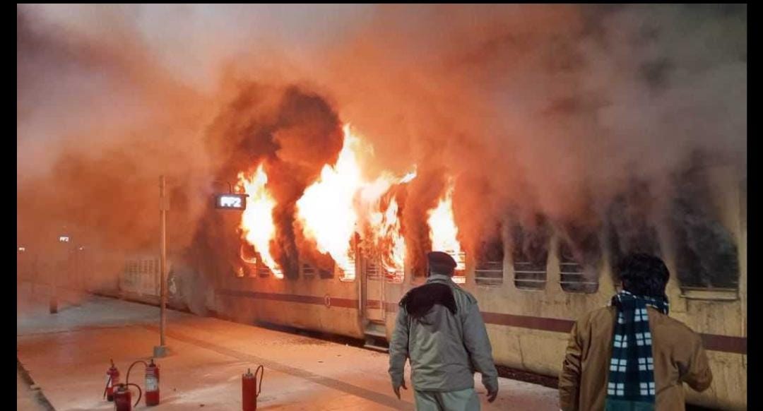 рдкреНрд▓реЗрдЯрдлреЙрд░реНрдо рдкрд░ рдЦрдбрд╝реА рдЯреНрд░реЗрди рдХреЗ рдХреЛрдЪ рдореЗрдВ рдЖрдЧ рдХреИрд╕реЗ рд▓рдЧреА?