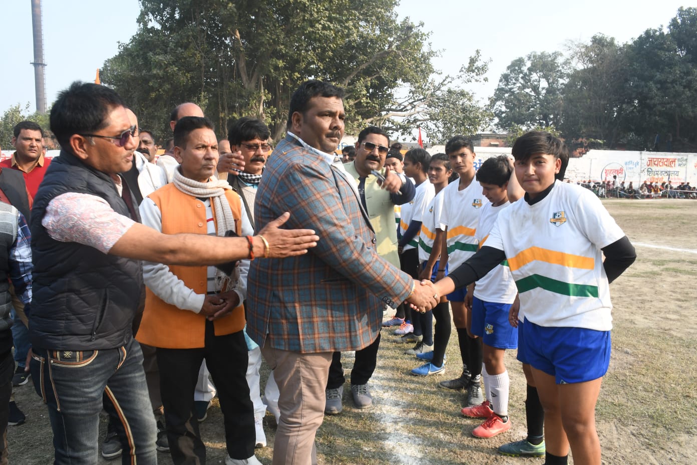 मैच के मुख्य अतिथि समाजवादी पार्टी के पूर्व लोक सभा प्रत्याशी अजय प्रताप सिंह (पिंटू ) विशिष्ट अतिथि सपा नेता बाँके लाल यादव और कार्यक्रम की अध्यक्षता राधेश्याम राय (प्रधान) द्वारा खिलाडियों से परिचय प्राप्त कर किया गया