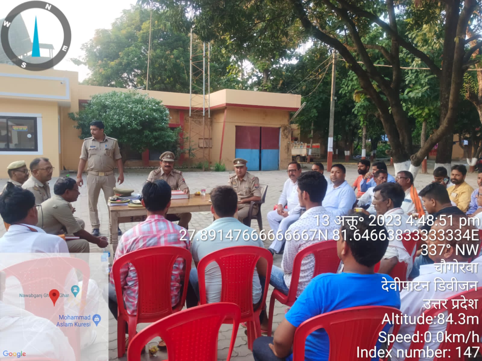 हुई पीस कमेटी की बैठक , जिसमें थाना नवाबगंज की टीम सहित क्षेत्र के ग्राम प्रधान व प्रधान प्रतिनिधि , व, भाजपा कार्यकर्ता , दुर्गा पूजा समिति के पदाधिकारी, समाजसेवी सहित तमाम लोग उपस्थित रहे।