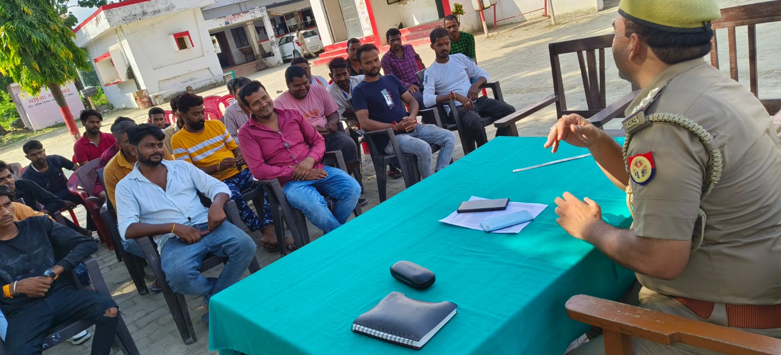 आज दिनाँक 19/9/23 को आगामी त्यौहार बारावफात व गणेश प्रतिमा विसर्जन जुलूस के दृष्टिगत कोतवाली उतरौला परिसर में डी जे संचालको की गोष्टी की गई और त्यौहार बारावफात व गणेश प्रतिमा विसर्जन जुलूस को शांति और सौहार्द पूर्ण ढंग से मनाने को लेकर विचार विमर्श किया गया ! तथा गाइड लाइन से अवगत कराया गया !