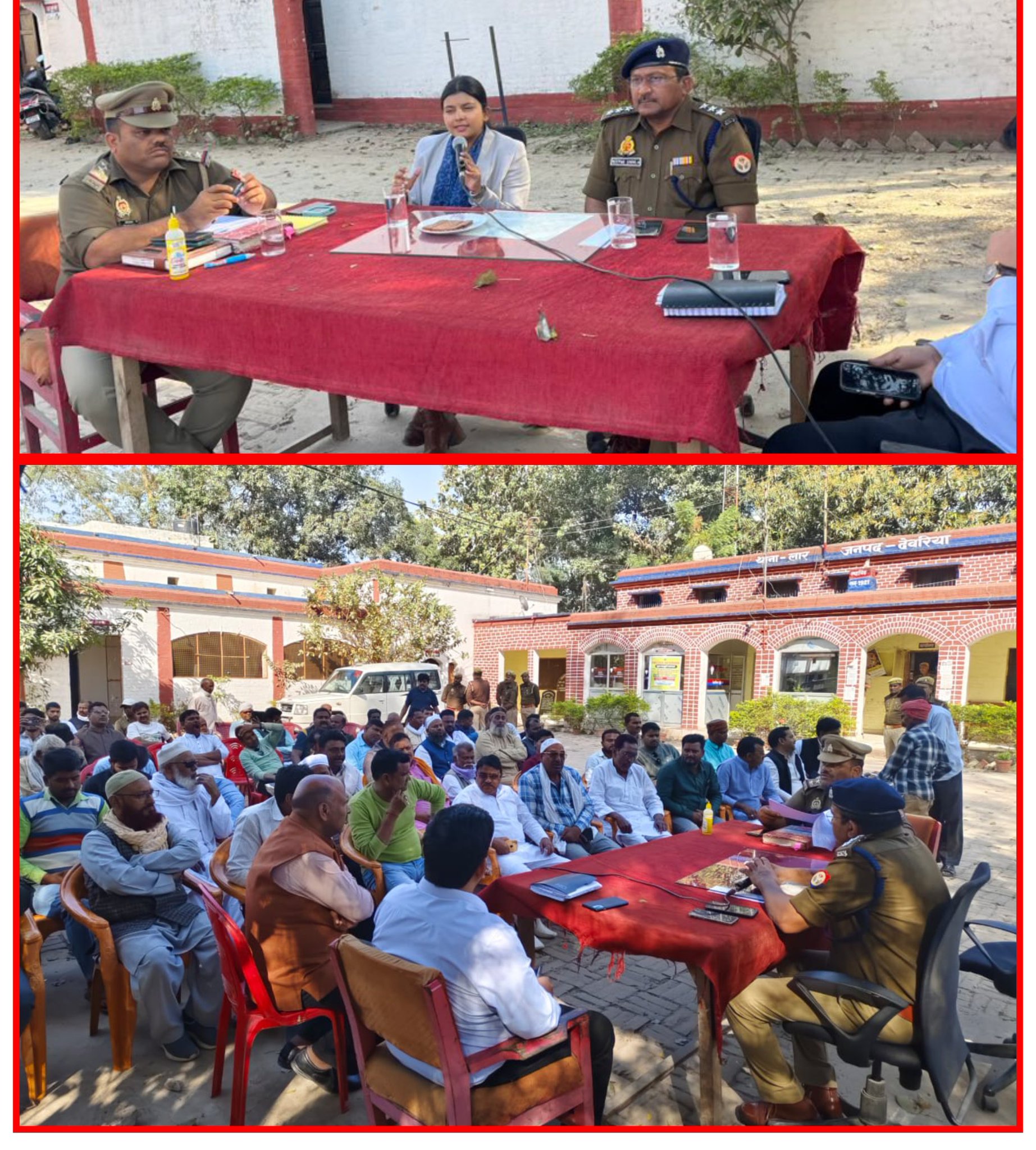 सलेमपुर/देवरिया(राष्ट्र की परम्परा)लार थाने में त्योहारों के दृष्टिगत शासन के आदेश के क्रम में उपजिलाधिकारी सलेमपुर दिशा श्रीवास्तव क्षेत्राधिकारी सलेमपुर दीपक शुक्ला की उपस्थिति में पीस कमेटी की बैठक हुई ।इस बैठक में उपजिलाधिकारी ने उपस्थित लोगों से कहा कि त्योहार पर क्षेत्र में शांति व्यवस्था कायम रखना जितनी पुलिस की जिम्मेदारी है उतनी ही जनता की भी है। इसलिए जनता पुलिस का सहयोग कर त्योहार पर माहौल बिगाड़ने वाले किसी भी अराजक तत्व की सूचना तत्काल पुलिस को दें। ताकि त्योहार पर शांति और सद्भाव कायम रहे । क्षेत्राधिकारी दीपक शुक्ला ने कहा कि यदि किसी भी व्यक्ति द्वारा त्योहारों पर माहौल बिगाड़ने की कोशिश की जाती है तो उस व्यक्ति की सूचना मिलने पर उसके खिलाफ सख्त कार्यवाही होगी इस बैठक में लार थाना प्रभारी उमेश बाजपेई के साथ क्षेत्र के तमाम सम्मानित लोग उपस्थित रहे ।
