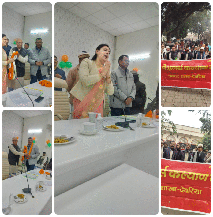देवरिया (राष्ट्र की परम्परा डेस्क)।जनपद देवरिया के कलेक्ट्रेट स्थित न्यू सभागार में बुधवार, 17 दिसंबर 2025 को पेंशनर्स दिवस समारोह का भव्य आयोजन किया गया। इस अवसर पर उत्तर प्रदेश पेंशनर्स कल्याण संस्था, जनपद देवरिया के तत्वावधान में वरिष्ठ पेंशनरों की गरिमामयी उपस्थिति देखने को मिली। कड़ाके की ठंड और शीतलहर के बावजूद बड़ी संख्या में पेंशनरों की भागीदारी ने आयोजन को ऐतिहासिक बना दिया।