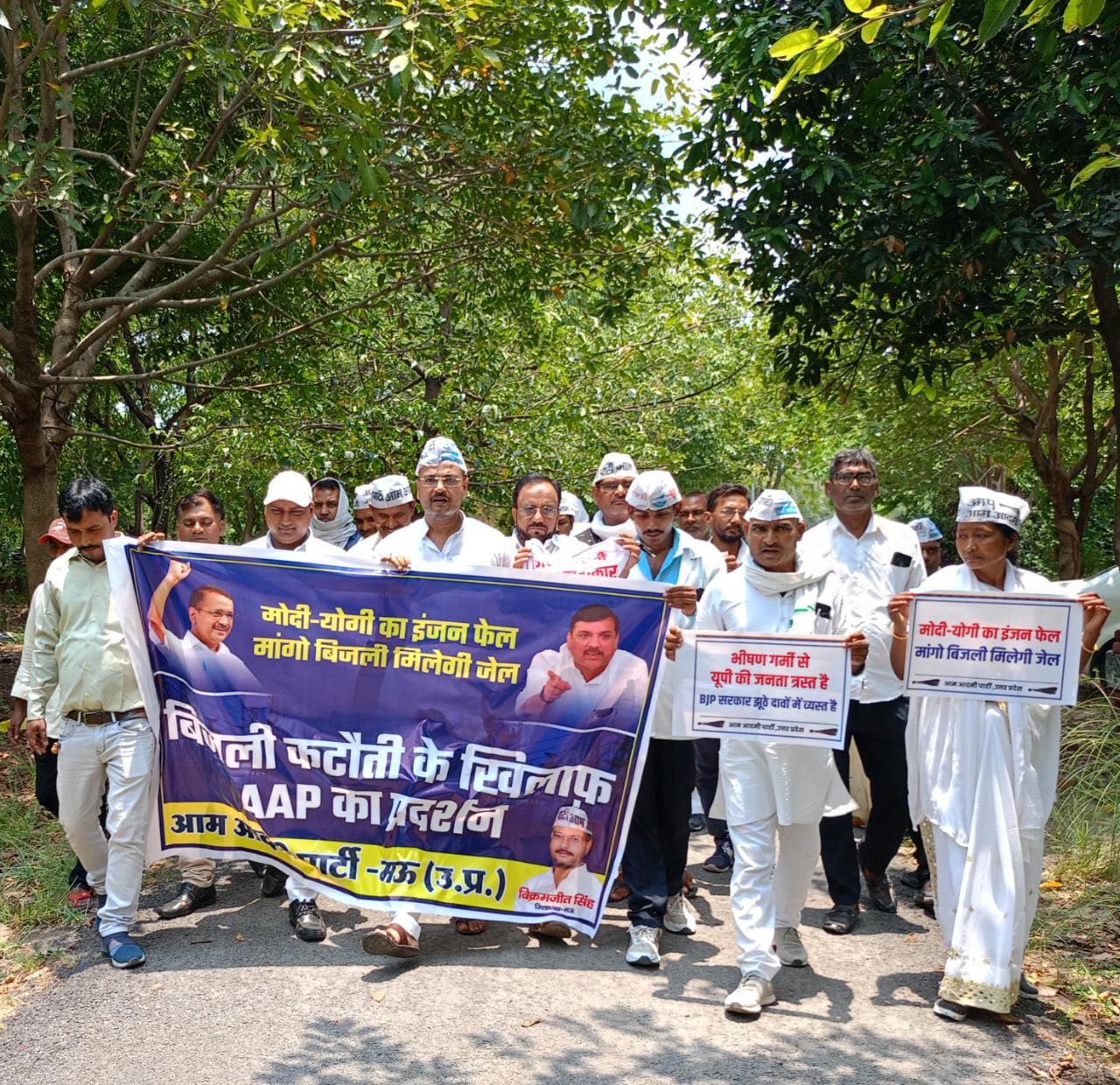 प्रदेश में हो रही बेतहाशा बिजली कटौती के खिलाफ़ आम आदमी पार्टी उत्तर प्रदेश द्वारा मऊ ज़िले में जिला अध्यक्ष विक्रमजीत सिंह के नेतृत्व में ज़ोरदार विरोध प्रदर्शन किया गया और ज्ञापन सौंपा गया तथा पुलिस प्रशासन का आम आदमी पार्टी के कार्यकर्ताओं से झड़प भी हुई तथा उसमें बिजली विभाग की शव यात्रा को नही निकालने दिया गया।