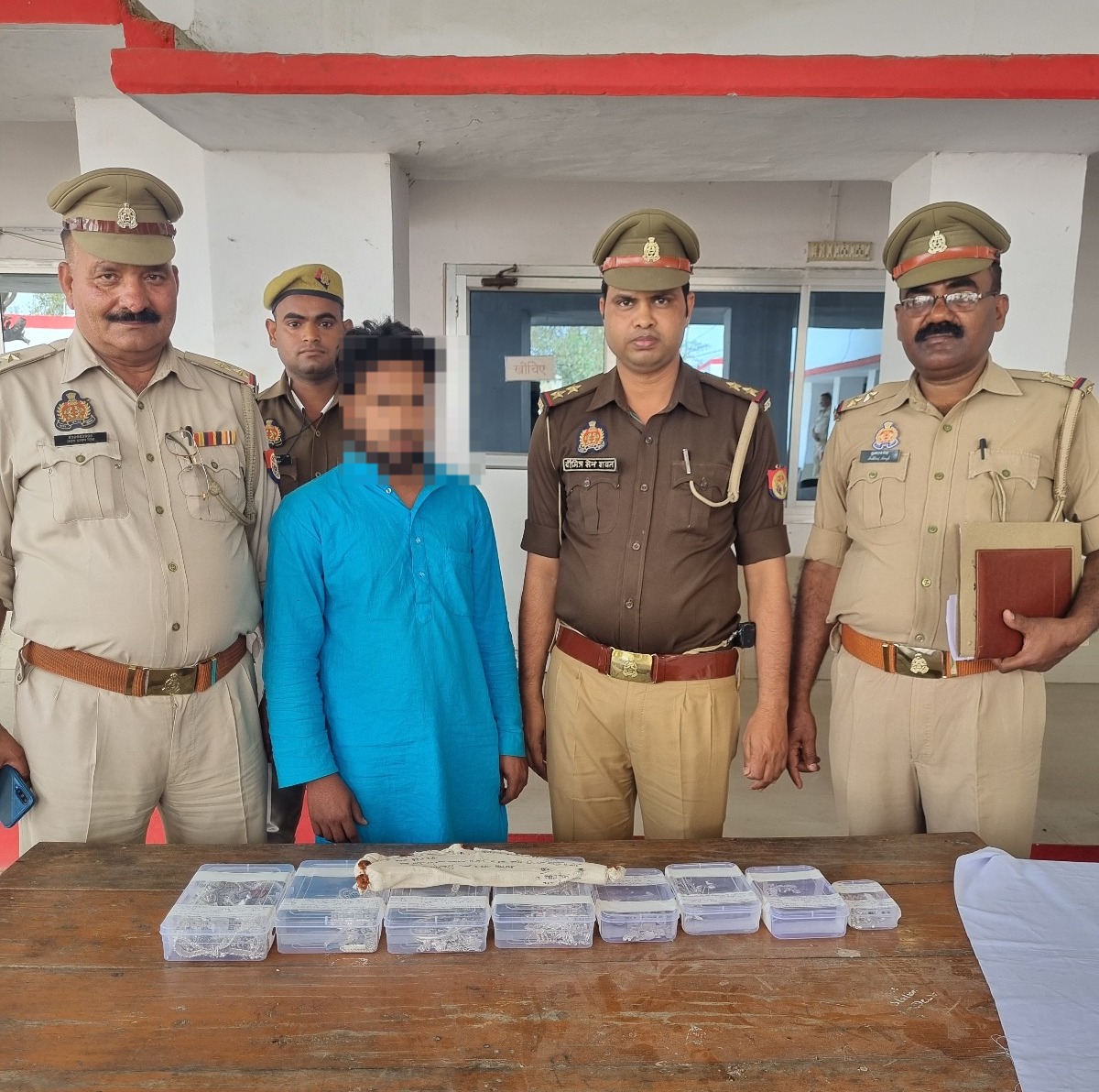 पुलिस अधीक्षक बाराबंकी दिनेश कुमार सिंह द्वारा जनपद में अपराध एवं अपराधियों पर प्रभावी नियंत्रण हेतु चलाए जा रहे अभियान के क्रम में, थाना देवा पुलिस द्वारा मैनुअल इंटेलीजेन्स के आधार पर 24.03.2024 को अभियुक्त सुहेल पुत्र सलूहत निवासी खैरी पट्टी थाना तम्बौर जनपद सीतापुर को टीकापुर मोड़ के पास से गिरफ्तार किया गया। अभियुक्त के कब्जे से चोरी के 2.295 किग्रा0 जेवरात सफेद धातु, 01 अदद अवैध तमंचा .12 बोर व 01 अदद कारतूस जिन्दा .12 बोर तथा घटना कारित करने में प्रयुक्त स्विफ्ट कार UP 32 FL 8639 बरामद किया गया। उपरोक्त बरामदगी के आधार पर मु0अ0सं0 177/2024 धारा 411/413 भादवि व 3/25 आर्म्स एक्ट पंजीकृत किया गया।