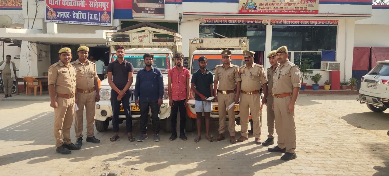 सलेमपुर/देवरिया(राष्ट्र की परम्परा) सलेमपुर पुलिस को बड़ी सफलता हाथ लगी । असलहे के साथ चार गो तस्करों को किया गिरफ्तार, देर रात सलेमपुर पुलिस ने मुखबिर की सूचना पर टीम बना कर कार्यवाही करते हुए । सूचना के अनुसार आने जाने वाली गाड़ियों के जॉच करने लगे तभी नदावर पुल से एक पिकअप गाड़ी आती नजर आई जिसे अरोध उत्पन्न कर रोका गया गाड़ी रोकते ही गाड़ी का ड्राइवर भागने लगा जिसे सलेमपुर पुलिस ने पीछा कर पकड़ ने में सफलता हासिल की । जिस पिकअप गाड़ी को रोका गया उसकी जांच पड़ताल में गोवंशियो को क्रुरता पूर्वक लादा गया था । इस गाड़ी ड्राइवर से जब पुलिस ने पूछ ताछ किया तो ड्राइवर द्वारा अपना नाम विपुल चौरसिया पुत्र विजय चौरसिया निवासी ग्राम पैना थाना बरहज बताया इस व्यक्ति ने पुलिस को बताया कि यह गाय के तस्करी का काम ओम प्रकाश यादव पुत्र हरिहर यादव निवासी सुंदरचक थाना बनकता के द्वारा देवरिया और आस पास के जगहों से छुट्टा पशुओं को पकड़ कर व गांव देहात से कम पैसे में पशुओं को खरीद कर बिहार प्रांत लेजाया जाता है और वहा बध के लिए बेच दिया जाता है ।जिससे हमे अच्छी कमाई हो जाती है ,इस व्यक्ति द्वारा ये भी बताया गया को हमारे बाद एक और पिकअप इसी रास्ते से आयेगी जिसपर पुलिस सतर्क होकर इस पकड़ी गई गाड़ी को छुपा कर दूसरी गाड़ी का इंतजार करने लगी ,तभी एक और पिकअप गाड़ी आती दिखी इस गाड़ी को भी सलेमपुर पुलिस ने रास्ते में अवरोध उत्पन्न कर घेराबंदी कर इस गाड़ी को रोका जिसपर गाड़ी रोक ड्राइवर द्वारा भागने की कोशिश की गई लेकिन पुलिस ने उक्त व्यक्ति को पकड़ लिया और पूछ ताछ की तो इस व्यक्ति ने अपना नाम मोहित कुमार पुत्र विनोद श्रीवास्तव निवासी ग्राम रूईया पोस्ट बंगरा थाना जिरादेई जिला शिवान प्रदेश बिहार बताया उम्र 22 वर्ष इस व्यक्ति की तलाशी ली गई तो इसके कमर से एक देशी तमंचा 315 बोर पाया गया इस व्यक्ति के वाहन से दो गाय और एक बछड़ा पाया गया इन सभी पशुओं के मुख ,पैर को बड़ी ही बेरहमी से बांधा गया था। इस पशु तस्करी में संलिप्त लोगो के विरुद्ध सलेमपुर पुलिस ने मुकदमा दर्ज कर लिया गया इस पूरी कार्यवाही में सलेमपुर थाने में तैनात उप निरीक्षक नीरज सिंह यादव,उप निरीक्षा निरंजन लाल, का० शंभू सिंह, का ०गुलशन सोनकर,रितेश सोनकर,का० कवि भूषण सिंह, आदि ने अहम भूमिका निभाई ,सभी अभियुक्तों को विधिपूर्वक कार्यवाही करते हुए जेल भेज दिया।