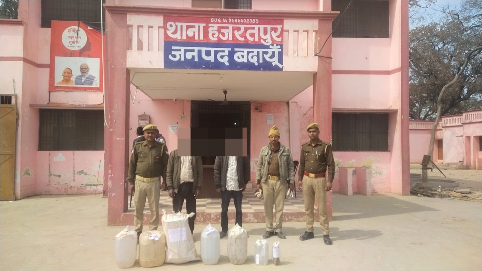 सोमवार 26.02.2024 को मुखबिर खास की सूचना पर थाना हजरतपुर के द्वारा दो अभियुक्त हरिशचंद्र पुत्र रम्मू, विश्राम पुत्र रम्मू निवासी गण ग्राम सिमरिया देंदू थाना हजरतपुर बदायूँ को 04 पेटियो मे 80 लीटर कच्ची शराब तथा शराब बनाने के उपकरण के साथ गिरफ्तार किया गया। जिसके सम्बन्ध में थाना हजरतपुर पर मु0अ0स0 – 43/24 धारा 60(2) Ex act के तहत अभियोग पंजीकृत कर अभियुक्तों को न्या0 के समक्ष पेश किया गया ।