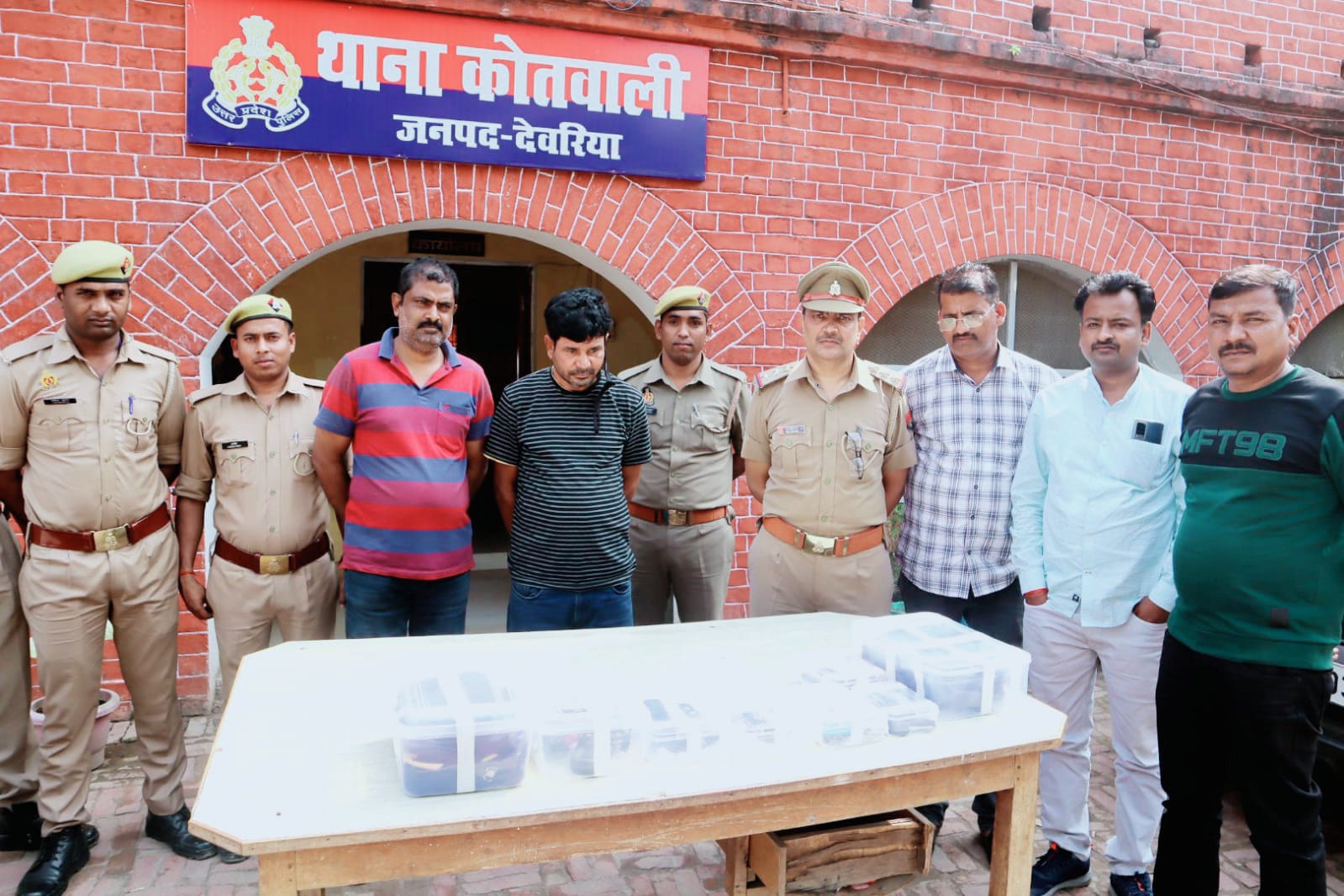 देवरिया (राष्ट्र की परम्परा) । जनपद देवरिया के कोतवाली थानाक्षेत्र में दो संदिग्ध व्यक्ति मोटरसाइकिल व स्कूटी तथा कुछ व्यक्ति आल्टो गाडी से भुजौली कालोनी घूमने की सूचना पर जो कालोनी के खडे वाहनो को खोलने का प्रयास कर रहे हैं । सूचना पर मौके पर ही दो टीम गठित कर अलग-अलग गाडियों से मुखबीर को साथ लेकर भुजौली कालोनी कूर्ना नाला पहुचने पर सभी गाडी वाले पीछे मुडकर भागने का प्रयास करने लगे तभी स्कूटी व मोटरसाइकिल दोनो गाडी मुडते वक्त आपस में टकरा कर राणा प्रताप कालोनी के पास मंदिर पहले बीच सडक पर गिर गये तथा कार वाले पीछे मंदिर की तरफ भुजौली कालोनी होते हुए अंधेरे का फायदा उठाते हुए तेजी से भाग गये। पकडे गये अभियुक्तो ने अपना नाम शेख मुबारक पुत्र शेख नथुनी निवासी रमौली पोस्ट सैदपुर थाना शिकारपुर जिला बेतिया बिहार तथा मनोज कुमार चौधरी पुत्र चन्द्रिका चौधरी निवासी महन्थ मनिहारी थाना मनिहारी जिला मुजफ्फरपुर बिहार बताया जिनके पास से एक्स टूल पैड ( गाडी का इलेक्ट्रानिक प्रोग्रामिंग पैड) , एक्स टूल पैड का चार्जर, एक्स टूल स्कैनर ( KEY स्कैनर) डिवाइस, ई0सी0एम डिवाइ स्कैनर ( गाडी को डीकोडिंग मशीन ) , फार्च्यूनर की नकली चाभी, एक्स टूल पैड कारिमोड (ब्लूकलर), डिवाइस कनेक्टर केबल (रेड और ब्लैक) तथा गाडियों की 08 अदद चाभी व 08 अदद रिंच व एक रेती, एक पेंच कसलाक तोडने वाला व 02 अदद दो पहिया वाहन मौके से व एक अदद मोबाईल रेडमी बरामद हुआ। दोनो अभियुक्तो ने पूछ ताछ मे बताया की फरार अभियुक्तगण के साथ मिलकर चोरी के वाहनो को अन्य राज्यों व जनपदों में बेचने की बात स्वीकार की गयी है । सभी लोग मिल कर घूम घूम कर विभिन्न राज्यो मे लग्जरी वाहनो की चोरी करते हैं, गाडियों के लाक को खोलने के लिए इलेक्ट्रानिक डिवाइस का प्रयोग करते हैं, बरामद एक्स टूल पैड से गाडियों के सिस्टम को डीकोड कर के नकली चाभी लगा कर गाडी स्टार्ट करते हैं। जब मौके से गाडी लेकर भागते हैं तो गाडी के अन्दर जी पी एस जैमर डिवाइस लगा देते हैं, जिससे गाडी में लगा जीपीएस काम करना बंद कर देता है। पूछताछ मे गिरफ्तार अभियुक्तगण द्वारा दिनांक 6/7-3-2023 की रात में देवरिया रेलवे ओवर ब्रिज के नीचे होलिका दहन स्थल के बगल से स्कार्पियो S-10 सफेद रंग – UP52AQ0045 को, दिनांक 3/4-3-2023 की रात्रि में कसया कुशीनगर से एकस्कार्पियो S-11 सफेद रंग तथा एक फार्च्यूनर गाडी जनवरी2023 मे देवरिया सब्जी मंडी के पास से व एक काले रंग की स्कार्पियों नवम्बर-2022 में भुजौली कालोनी थाना कोतवाली जनपद देवरिया से चुराकर बेचने की बात स्वीकार की गयी है । उक्त अभियुक्तो को गिरफ्तार कर मा0 न्यायालय भेजा जा रहा है तथा फरार अभियुक्तगणो के गिरफ्तारी व वाहनो की बरामदगी का प्रयास किया जा रहा है