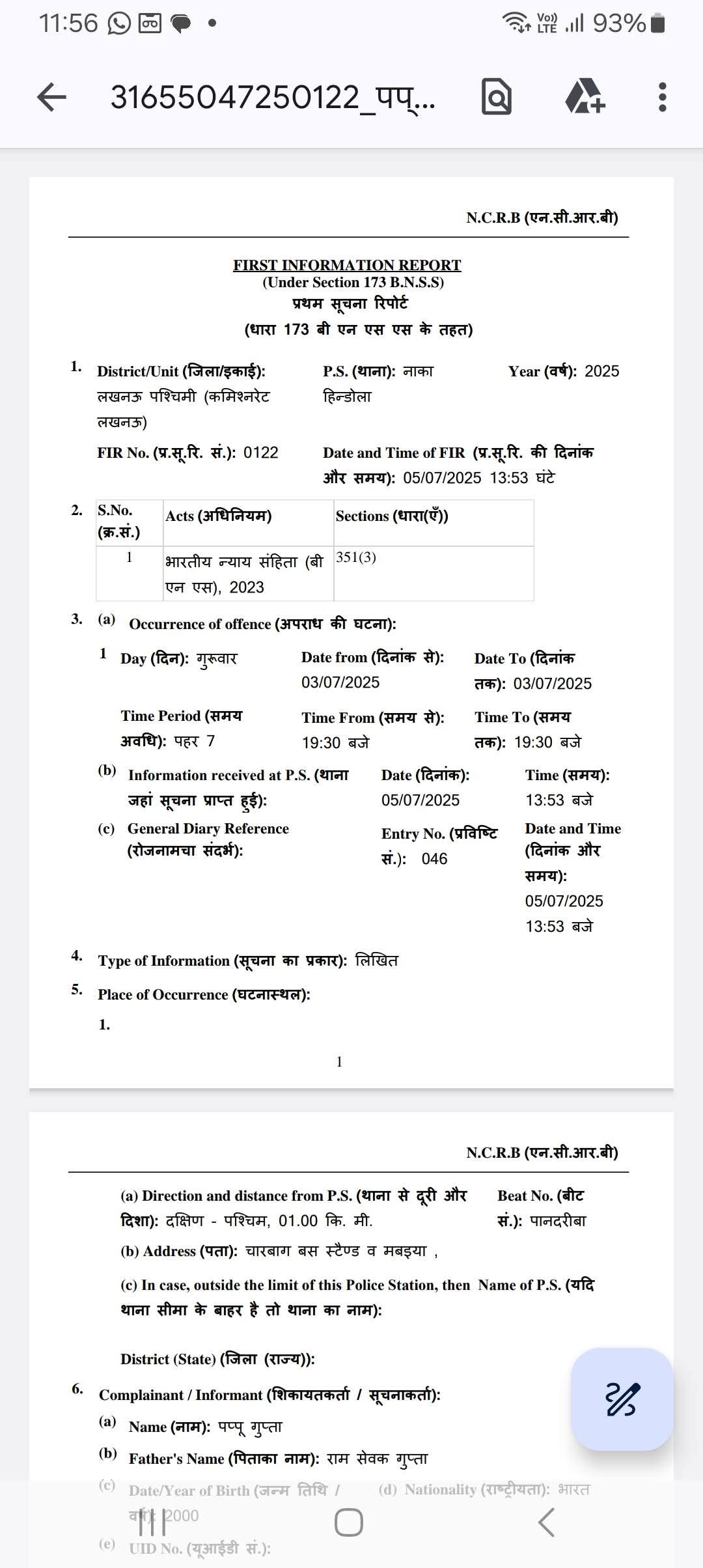 लखनऊ (राष्ट्र की परम्परा ) “दैनिक राष्ट्र की परम्परा” की खबर का बड़ा असर देखने को मिला है। 5 जुलाई को पोर्टल पर प्रकाशित खबर के बाद लखनऊ पुलिस हरकत में आ गई है। नाका थाना पुलिस ने हिंदू समाज पार्टी के कार्यकर्ता पप्पू गुप्ता पर हमले के मामले में आरोपियों अल्ताफ और रहीम के विरुद्ध प्राथमिकी दर्ज कर ली है। प्रारंभिक उपेक्षा के बाद अब पुलिस की इस कार्रवाई को पीड़ित पक्ष ने बड़ी राहत माना है।