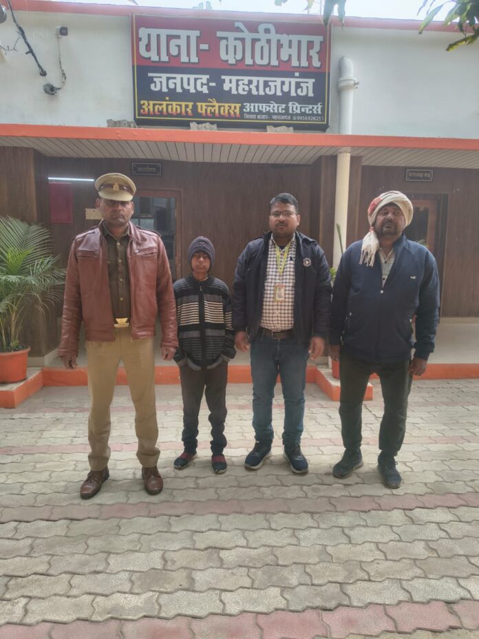 महराजगंज (राष्ट्र की परम्परा)। थाना कोठीभार पुलिस ने मानवीय संवेदनशीलता और कर्तव्यनिष्ठा का परिचय देते हुए एक मुखबधिर एवं मंदबुद्धि बालक को सुरक्षित उसके परिजनों से मिलवाकर सराहनीय कार्य किया है। यह घटना गुरुवार की है, जब पुलिस को सूचना मिली कि एक बालक घर से भटककर लावारिस अवस्था में इधर-उधर घूम रहा है। सूचना मिलते ही कोठीभार थाना पुलिस ने तत्परता दिखाते हुए बालक को सुरक्षित अपने संरक्षण में लिया। बालक बोलने और सुनने में असमर्थ होने के साथ ही मंदबुद्धि प्रतीत हो रहा था, जिससे उसकी पहचान करना एक चुनौतीपूर्ण कार्य था। इसके बावजूद पुलिस टीम ने धैर्य और संवेदनशीलता के साथ उससे संवाद स्थापित करने का हर संभव प्रयास किया।