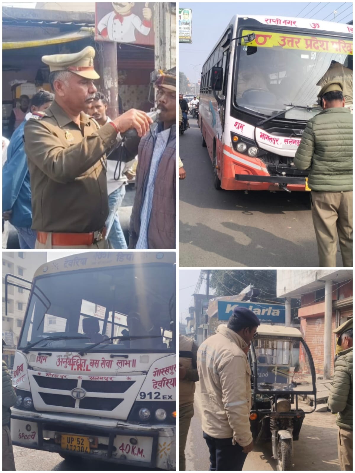 इसके अलावा गोरखपुर ओवरब्रिज, कसया ओवरब्रिज, मालवीय रोड और बस स्टैंड जैसे व्यस्त इलाकों में सड़क पर वाहन खड़ा कर सवारी भरने वाले अनुबंधित बसों, ऑटो और ई-रिक्शा चालकों के खिलाफ भी सख्त कदम उठाए गए। यातायात को बाधित करने वाले इन वाहनों पर चालान के साथ-साथ सीज की कार्रवाई की गई।