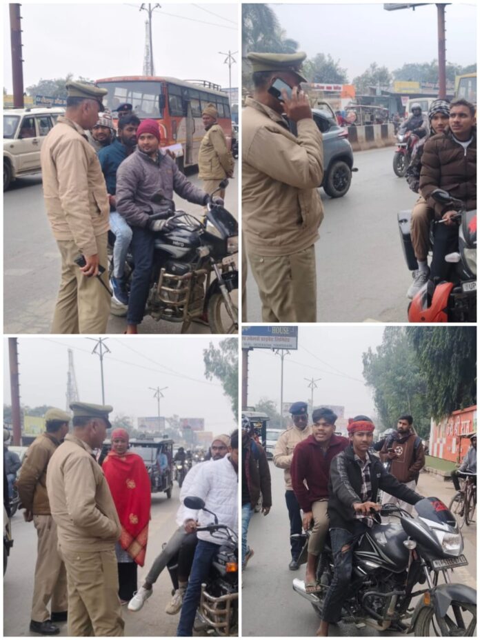 अभियान के दौरान गोरखपुर रोड, कसया ओवरब्रिज, मालवीय रोड एवं बस स्टैंड जैसे व्यस्त इलाकों में नियमों का उल्लंघन करने वाले वाहन चालकों के खिलाफ कड़ी कार्रवाई की गई। सड़क पर वाहन खड़ा कर सवारी भरने वाले ऑटो चालकों, बिना हेलमेट दोपहिया वाहन चलाने वालों, तीन सवारी बैठाने और खतरनाक स्टंट करने वालों को चिन्हित कर मोटर वाहन अधिनियम (एमवी एक्ट) के अंतर्गत चालान किया गया।