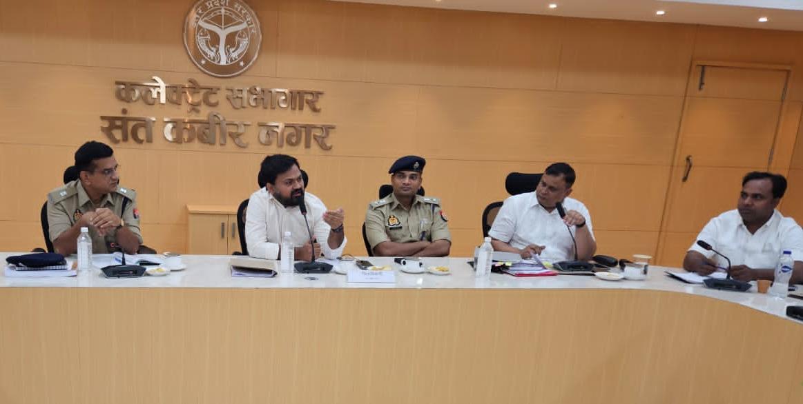 संत कबीर नगर (राष्ट्र की परम्परा)। जिला निर्वाचन अधिकारी/जिला मजिस्ट्रेट महेन्द्र सिंह तंवर की अध्यक्षता में समस्त मान्यता प्राप्त राजनैतिक दलों के अध्यक्ष, मंत्री, पदाधिकारियों के साथ लोक सभा सामान्य निर्वाचन-2024 में निर्वाचन प्रक्रिया सम्बंधित विभिन्न बिन्दुओं पर बैठक कलेक्ट्रेट सभागार में आयोजित हुई। इस अवसर पर पुलिस अधीक्षक सत्यजीत गुप्ता, उप जिला निर्वाचन अधिकारी जय प्रकाश व अपर पुलिस अधीक्षक शशिशेखर सिंह उपस्थित रहे।