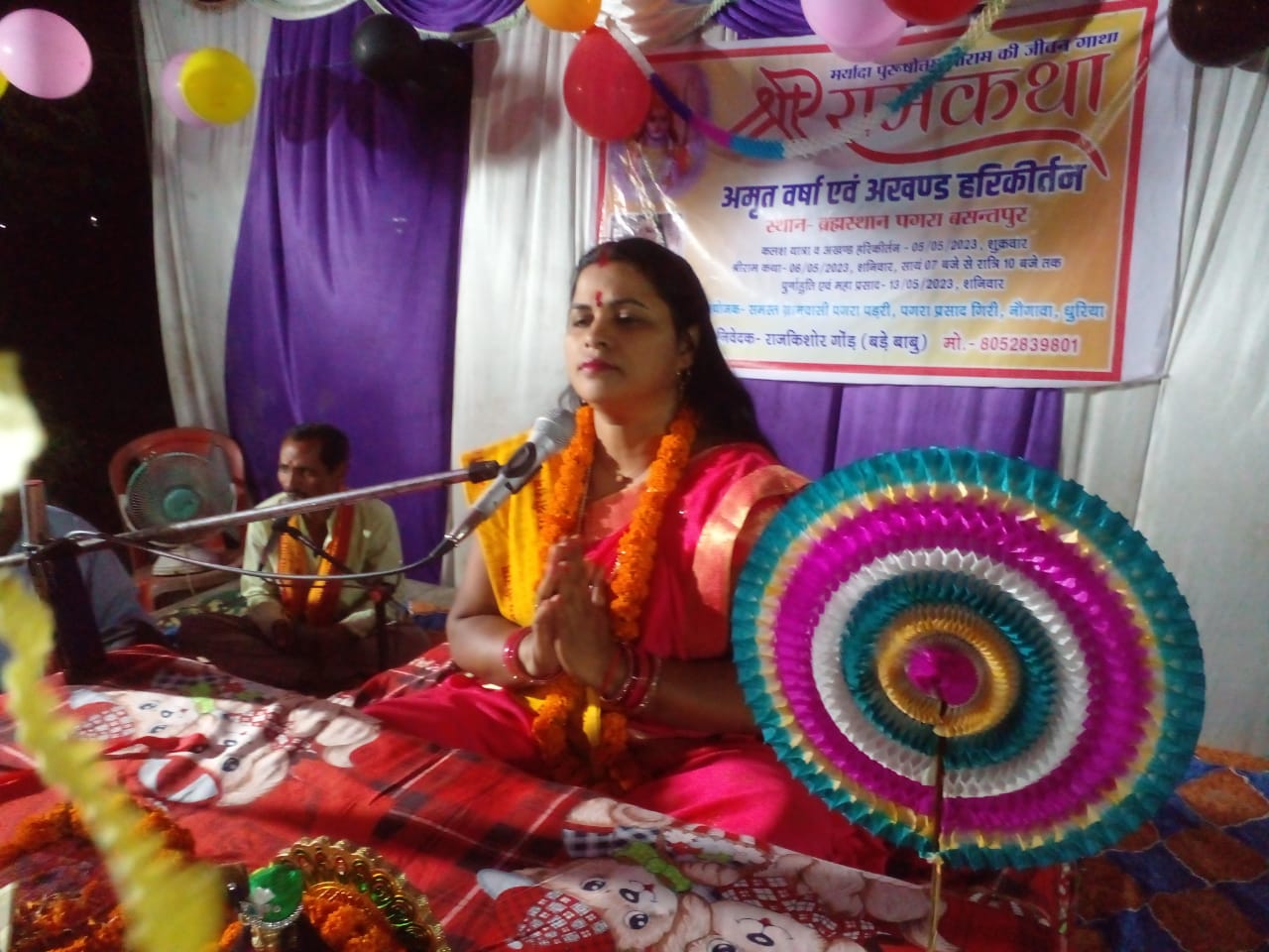 तमकुही विकास खंड के ग्राम पंचायत पगरा बसंतपुर के ब्रह्म स्थान पर, आयोजित नौ दिवसीय रामकथा अमृतवर्षा व अखंड हरिकीर्तन के पांचवे दिन बुधवार की रात्रि कथावाचिका सत्यामणि त्रिपाठी ने श्रद्धालुओं को पुष्प वाटिका प्रसंग सुनाया। कथावाचिका ने बताया कि जब राम और लक्ष्मण गुरु विश्वामित्र के साथ जनकपुर पहुंचे तो राजा जनक ने उन्हें सम्मान के साथ जनकपुरी में ठहराया। गुरु विश्वामित्र के पूजन के लिए जब राम और लक्ष्मण पुष्प वाटिका पहुंचे तो किस तरह राम और सीता ने मर्यादा का पालन करते हुए एक दूसरे को देखा था। व्यास ने कहा कि राम छोटे भाई से बातें कर रहे हैं, लेकिन सीता के रूप में लुभाया हुआ उनका मन सीता के कमल जैसे मुख की मकरंद रूपी छवि को भौंरे की तरह पी रहा है। उधर, माता सीता की सखियों ने लता की आड़ में सांवले और गोरे सुंदर कुमारों को दिखलाया। उनके रूप को देखकर नेत्र ललचा उठे, रामचंद्र की छवि देखकर नेत्र निश्चल हो गए। पलकों ने भी गिरना छोड़ दिया, अधिक स्नेह से देह की सुध-बुध जाती रही। मानो शरद् ऋतु के चंद्रमा को चकोरी देख रही हो, उन्होंने भक्तों को बताया कि परिस्थितियां कैसी भी रही हों, लेकिन प्रभु श्रीराम ने हमेशा मर्यादा का ही पालन किया है।